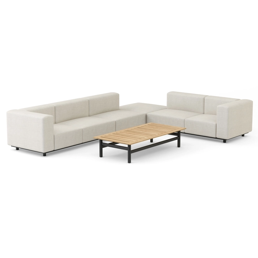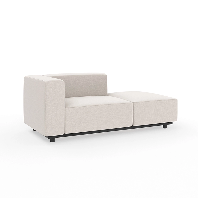 The collection consists of a variety of stand alone modules that allow for a range of configurations with the flexibility to adjust as needed. The fully upholstered design provides a welcome softness while its mass provides an architectural quality.