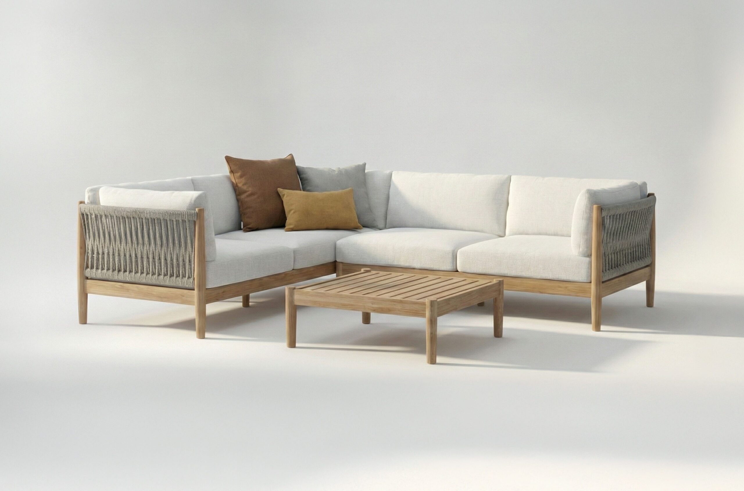 With remarkable comfort and elegant styling, the Georgica lounge collection invites you to sink in. Constructed from solid teak wood, subtle curves complement contrasting woven rope panels. Georgica is offered as a sectional sofa allowing a variety of planning configurations.