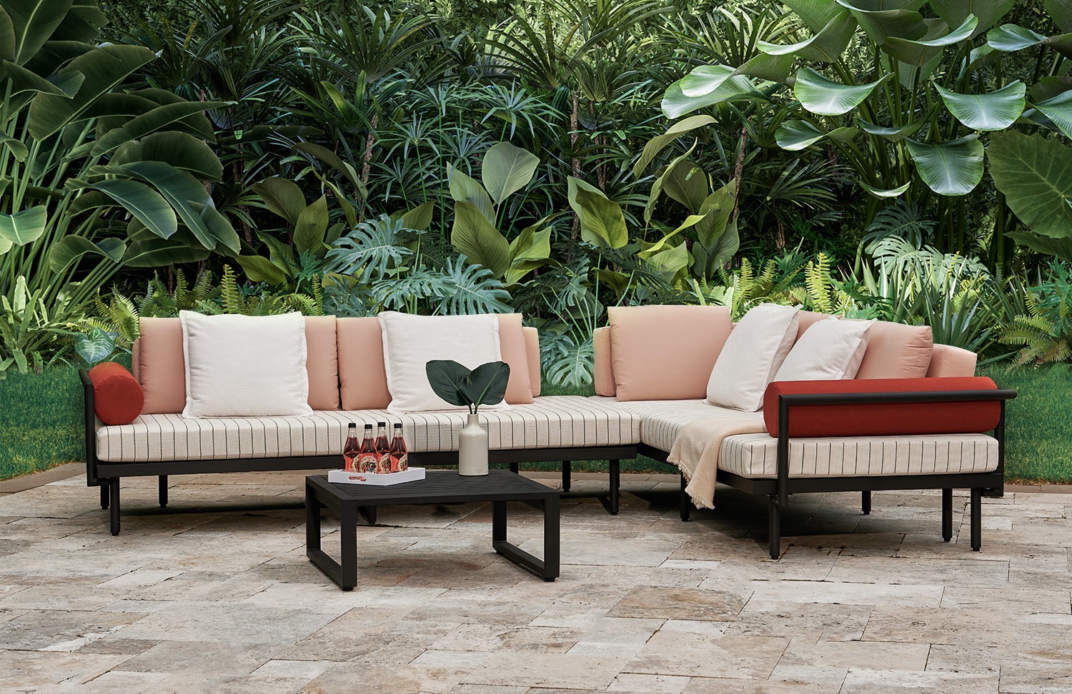- Cushion set is available in our own premium Giati Elements fabric, in all Sunbrella fabrics or COM. Zippers are corrosion resistant.