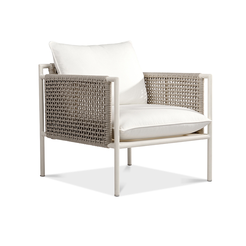 Like the mast of a sailboat, the collection’s reinforced powder coated aluminum frames and double wall rope-pane structures marry the lasting strength of metal with the trusted hand of knotted rope.