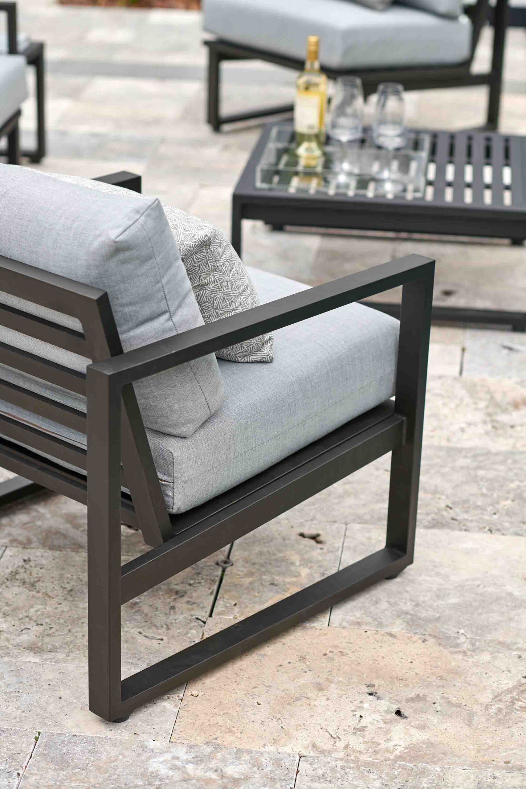 Enhance your outdoor space with the luxurious comfort and modern styling provided by the sleek lines and deep cushions of this exceptionally durable and visually appealing collection.