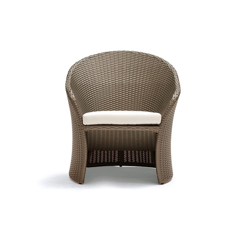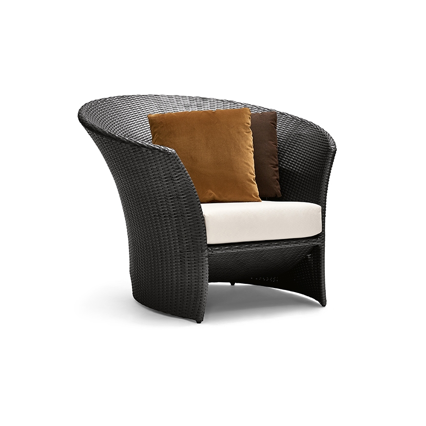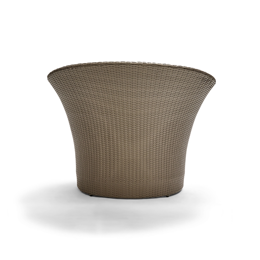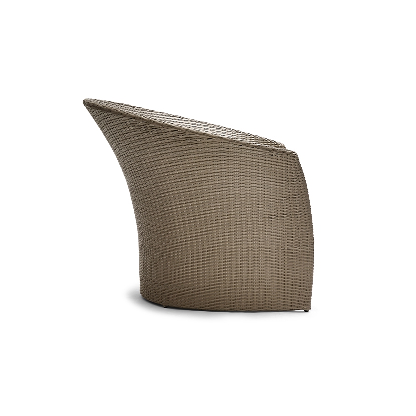 The Rivage Collection was inspired by the geometries of curved hyperbolic paraboloid forms that are found in nature and in man-made architecture. We sought inspiration in the sublime shapes of calla lilies, the buildings of Antonio Gaudi and Frank Gehry, and the tensile fabric structures of Frei Otto. This unique collection is hand-woven with resin fiber, which is well-suited for indoor and outdoor use. The curvilinear forms of this collection are generated by straight lines of fiber that are a pure expression of mathematics, aesthetics, the material and the craft of the artisans who weave each unique piece.