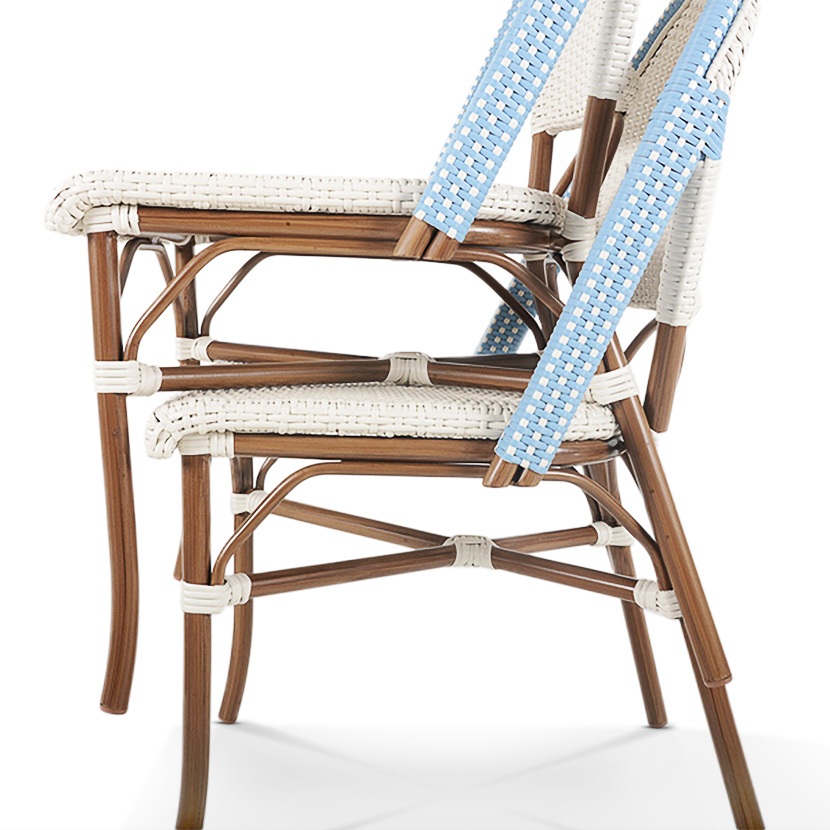 At the heart of this collection are the French style bistro chairs, featuring a curved backrest and sturdy legs reminiscent of the iconic chairs found on the streets of Paris. However, with a modern twist, these chairs are made with bright All-Weather material, making them suitable for both indoor and outdoor use. Available in a range of vibrant colors, they inject a pop of life and personality into any setting.