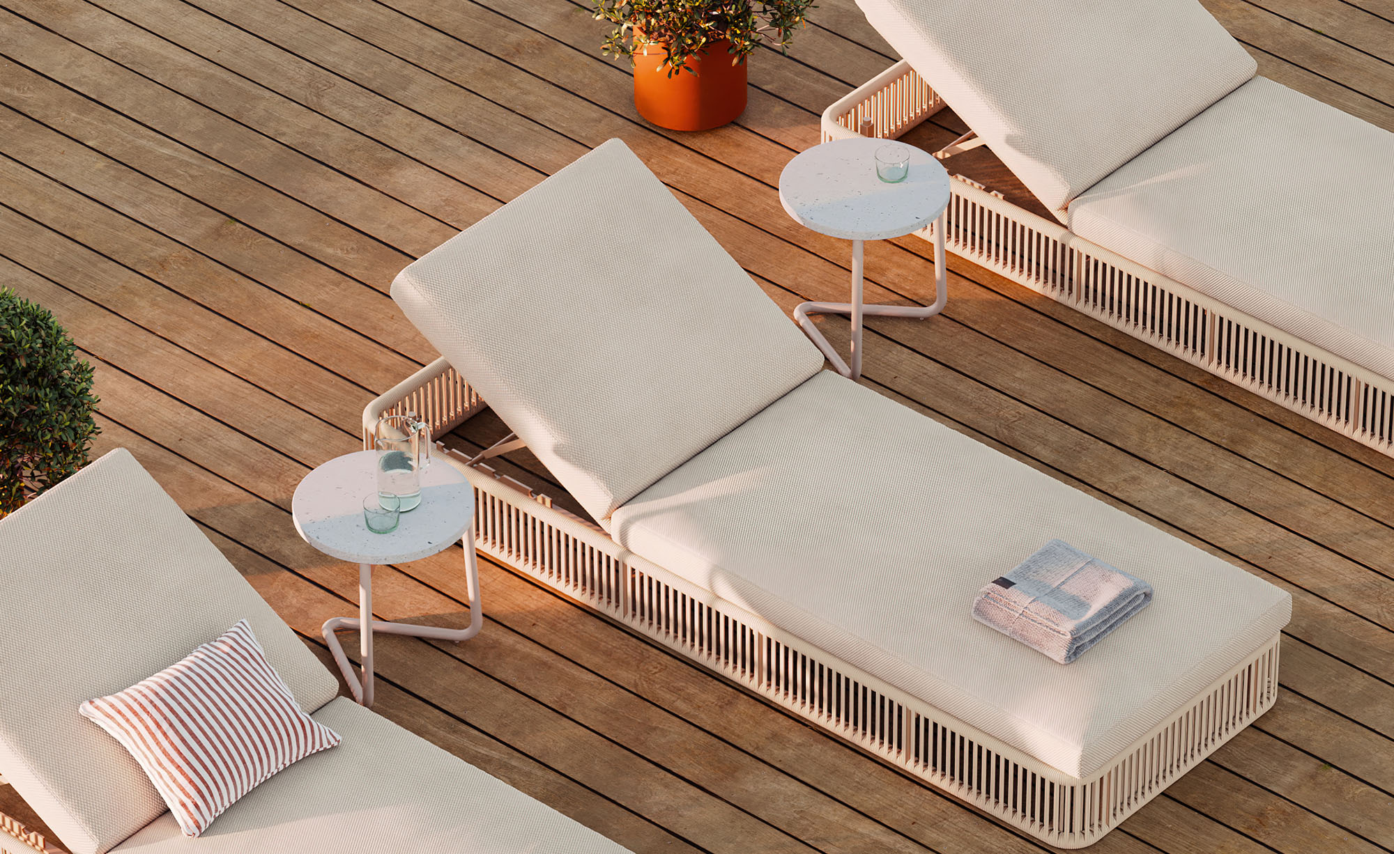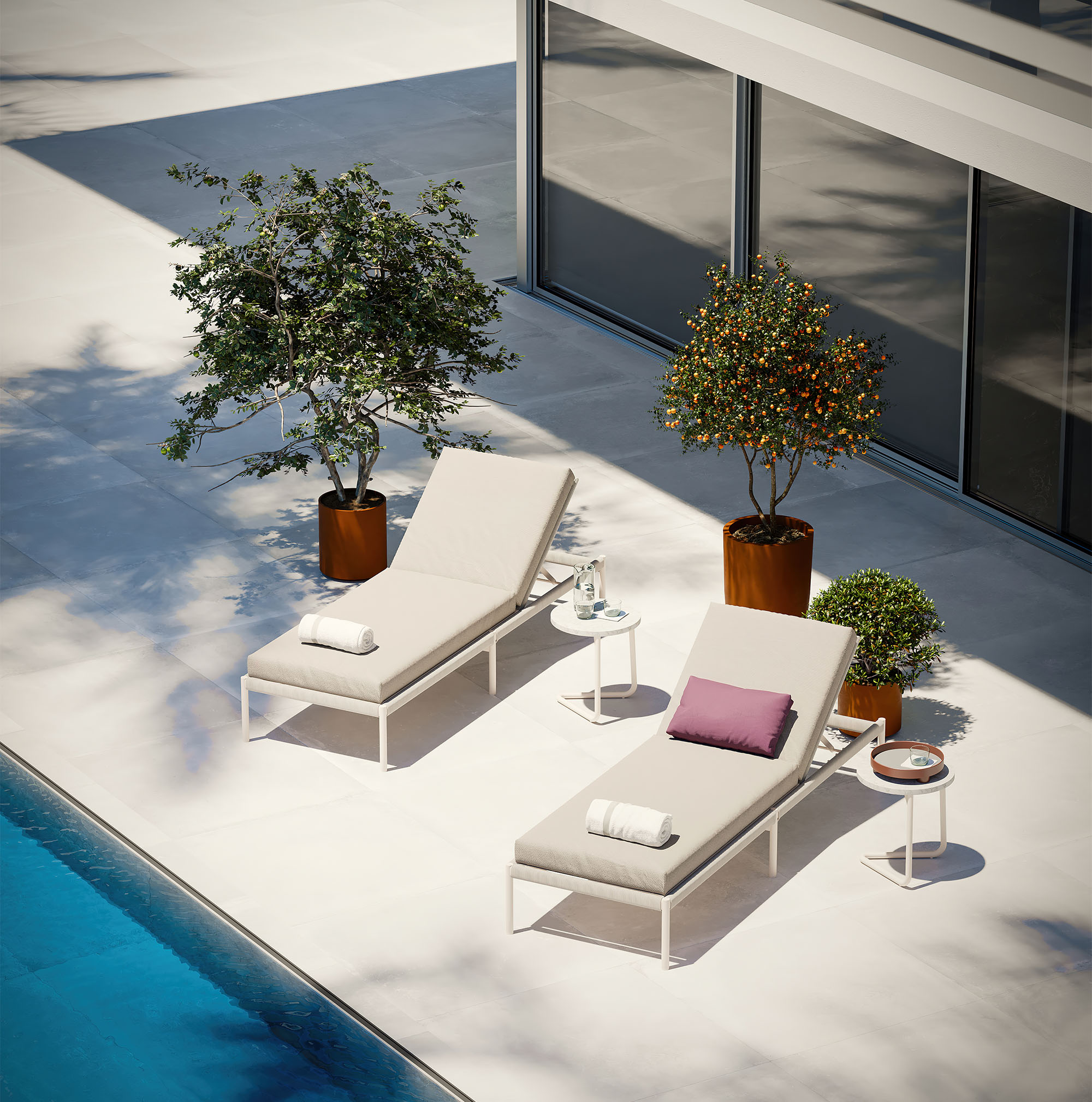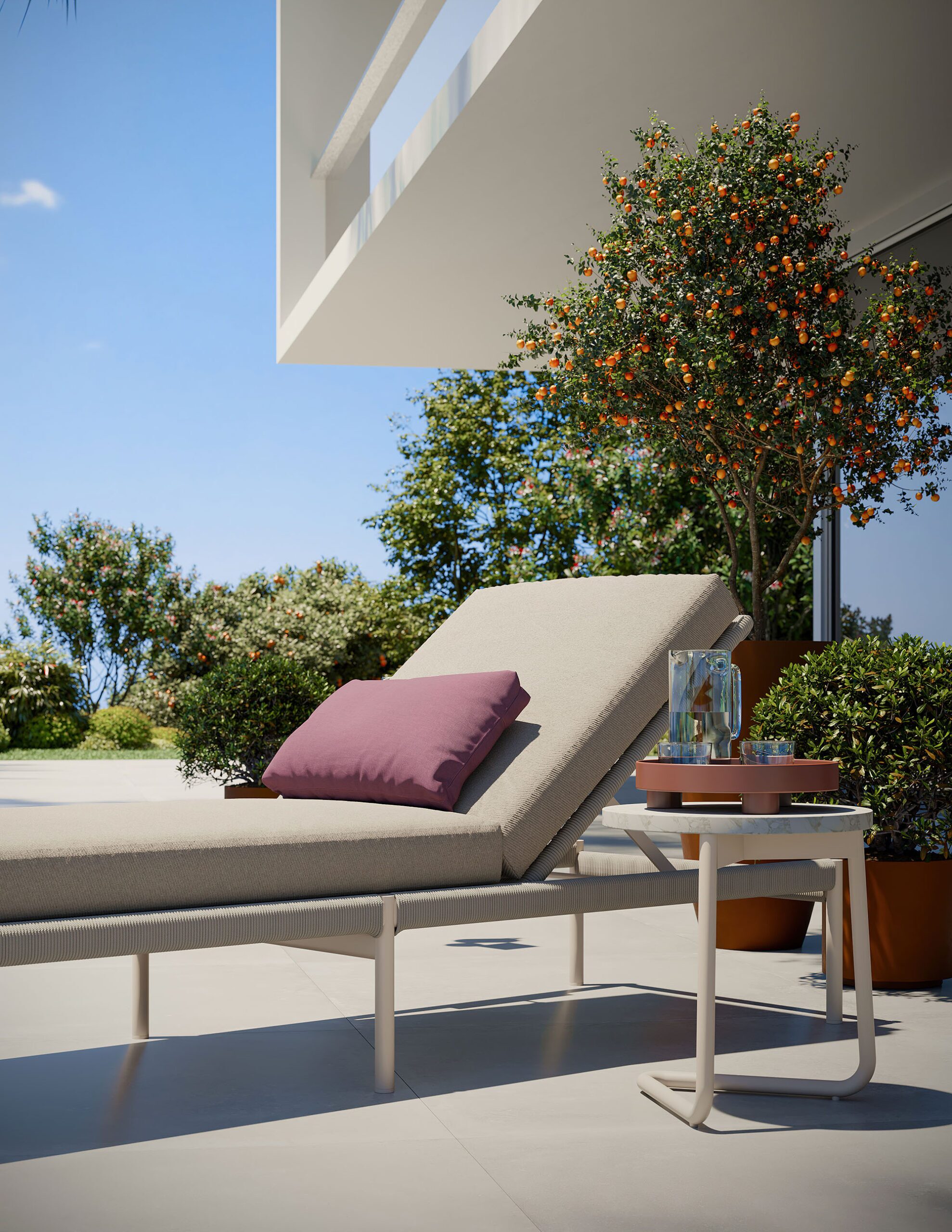 - Frame designed in a durable powder coated aluminum with stone top.