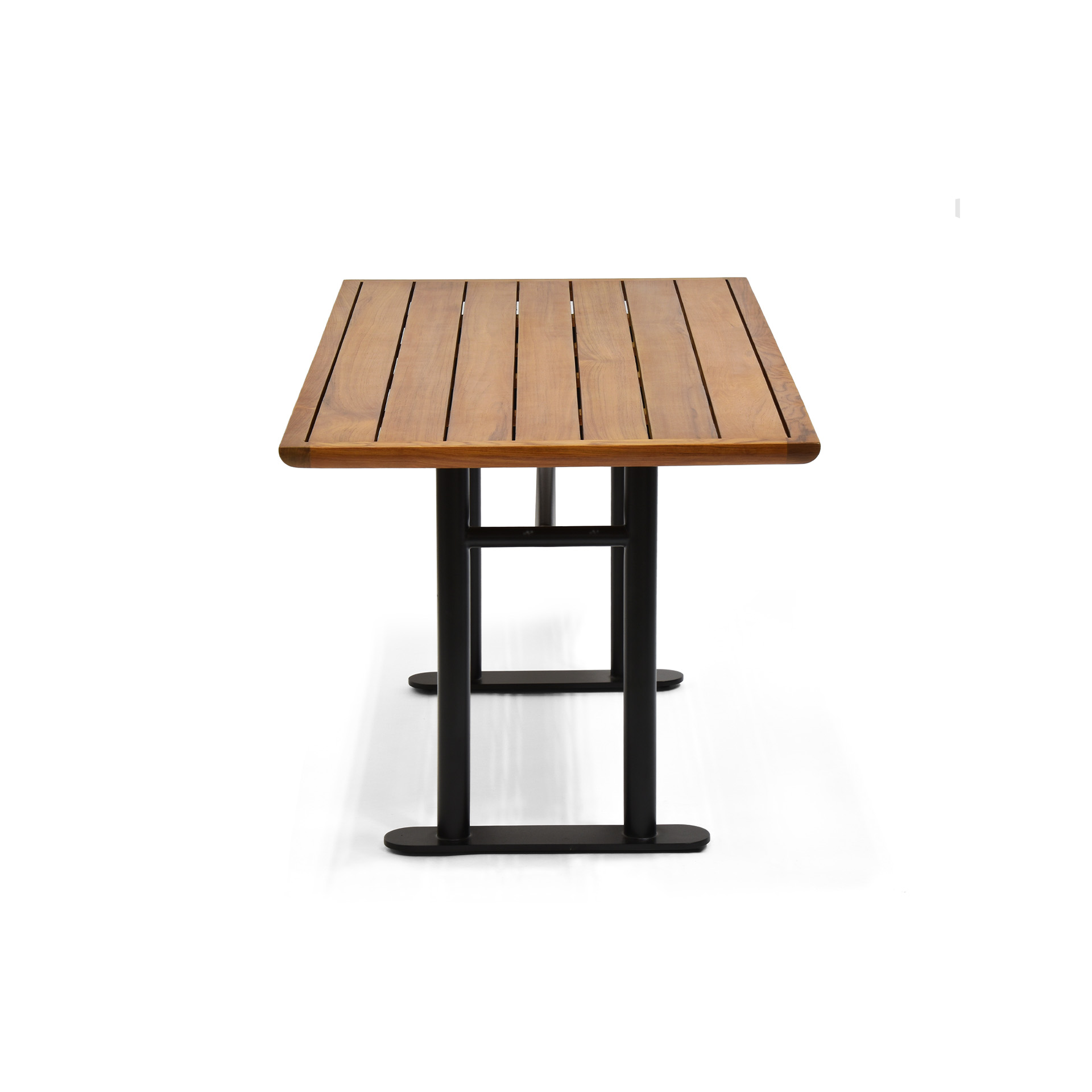 - Base designed in a durable powder coated aluminum with slatted teak top for drainage.