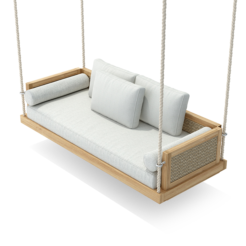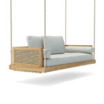 The Ophelia Collection introduces timeless elegance to your outdoor space with its sophisticated Swing Benches. Built on a durable teak frame, each piece is finished with beautiful side details of round twisted resin for an artisanal touch.