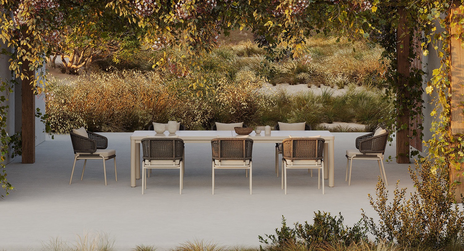 Palmer draws inspiration from classic design principles. Combining intricate woven rope designs with fluid lines, the Palmer Collection brings a modern, yet timeless look to any outdoor space. The collection is crafted with thoughtful design, using only the highest quality outdoor materials. The elegant pieces come in both minimal and intricate designs, allowing for a wide range of options to suit any outdoor setting. From the intricate woven rope designs, to the sleek and minimalist lines, each piece in the Palmer Collection is designed to make an impact.
