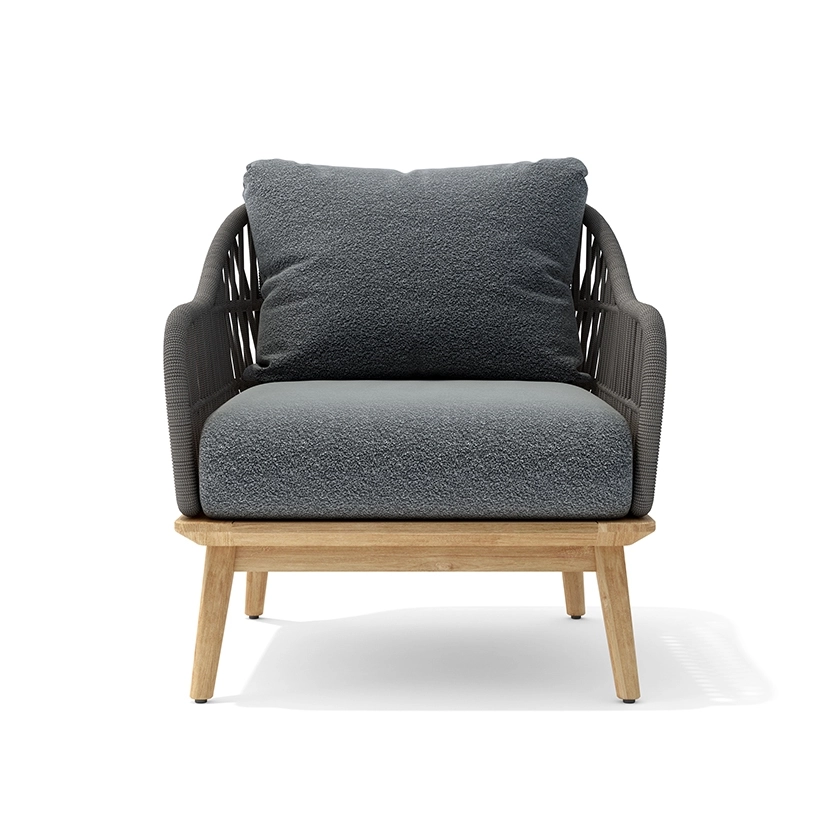 - Frame designed in a durable powder coated aluminum with woven mixed semi-flat and round resin