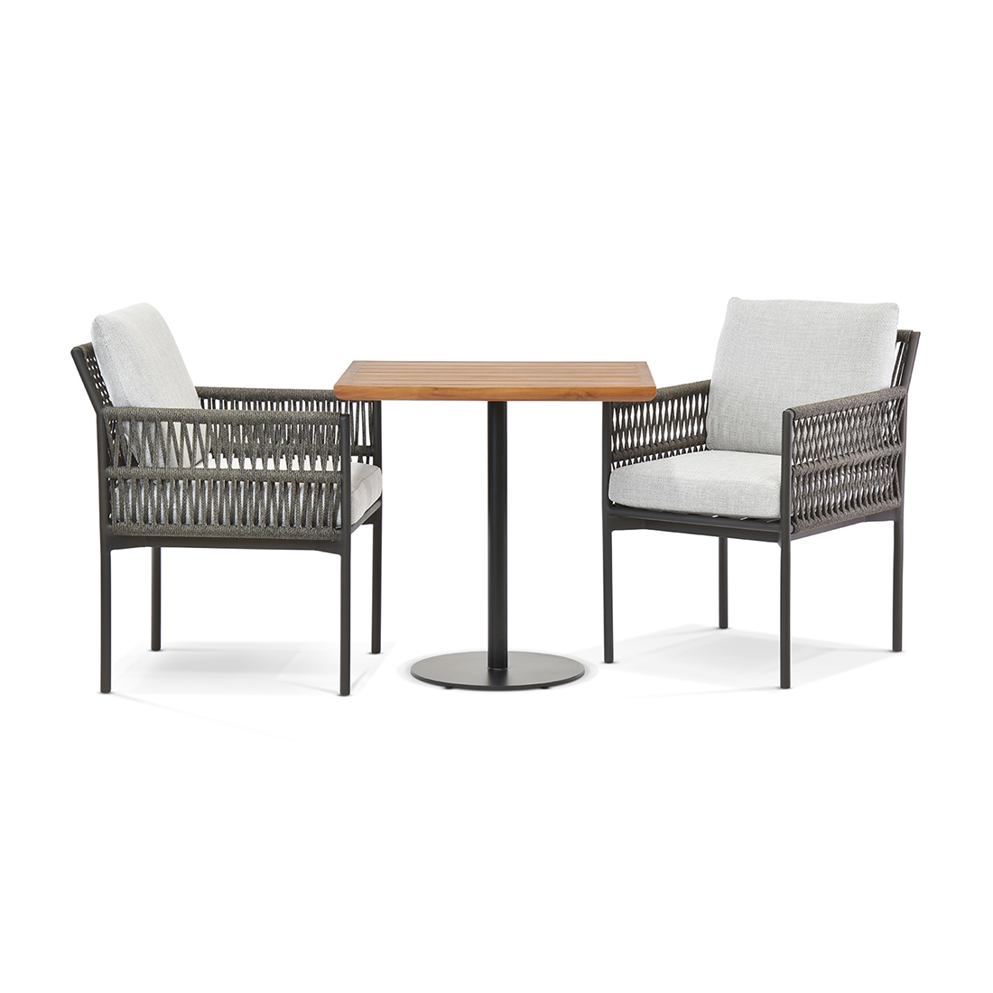 - Base designed in a durable powder coated aluminum with slatted teak top for drainage.