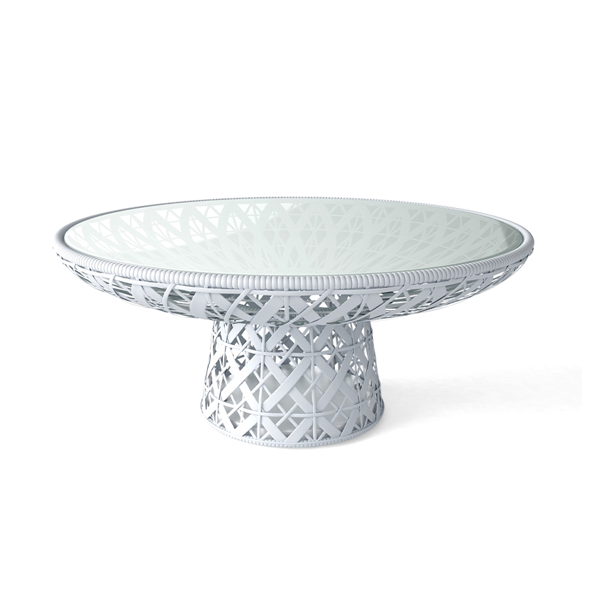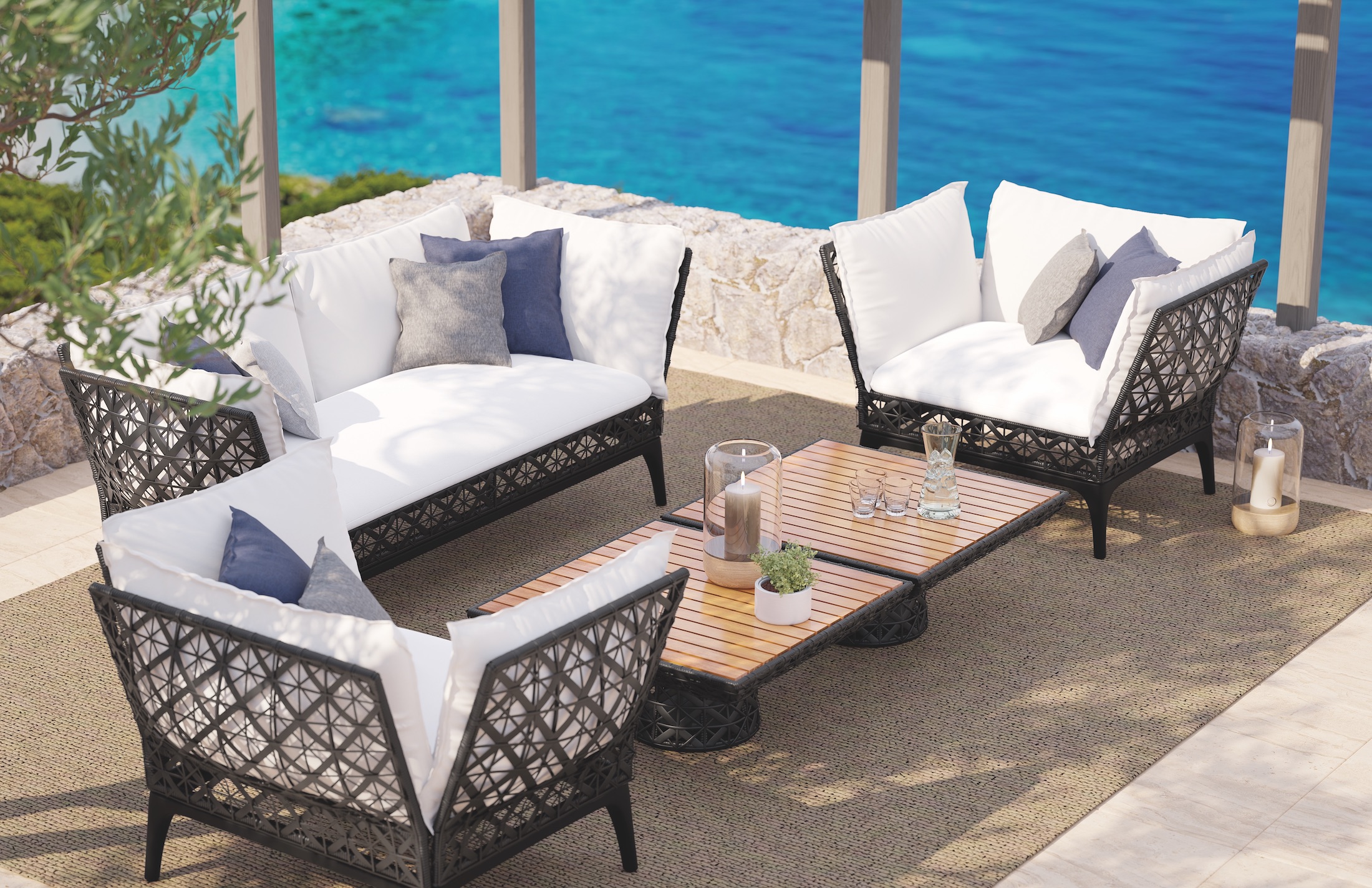 - Frame designed in a durable powder coated aluminum and wrapped in an all-weather outdoor rattan