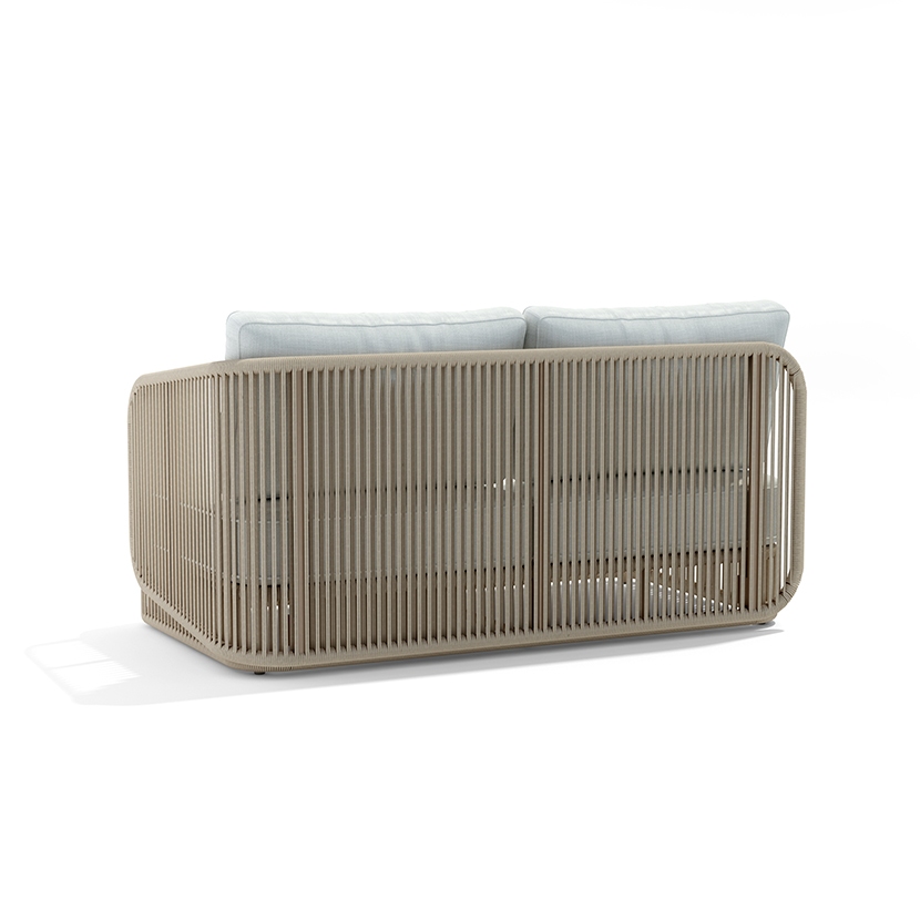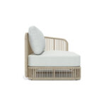 Wainscott collection features handwoven, all-weather rope in powerful vertical lines. Designed with natural spaces in mind, its rhythmic repetition mimics the surrounding landscape and seamlessly integrates into indoor and outdoor settings. The collection includes seating options for lounging and dining, with a versatile and sophisticated design