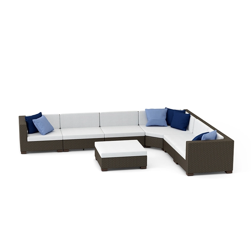 Modular and minimal with a contemporary feel, the Atlantic collection’s interchangeable sections provide a comfortable, adaptable setting. Constructed with durable flat woven resin, clean lines topped with cozy cushions make this set ideal for a range of applications and environments.