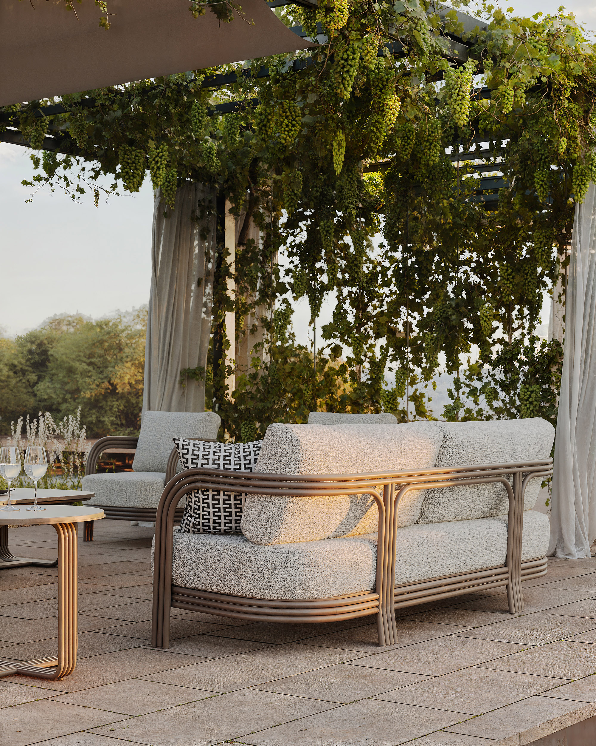 The Sable Collection uses durable aluminum for strength and lightness. It works just as well indoors as it does outdoors, making it easy to style on terraces, patios, or in living rooms.