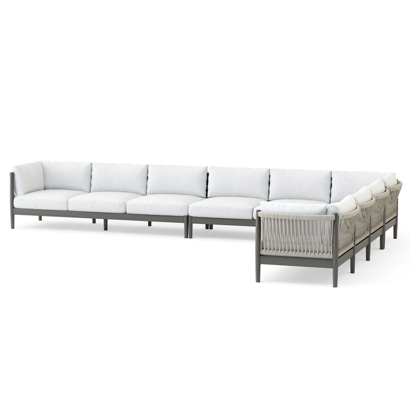 With remarkable comfort and elegant styling, the Georgica lounge collection invites you to sink in. Constructed from durable powder coated aluminum, subtle curves complement contrasting woven rope panels. Georgica is offered as a sectional sofa allowing a variety of planning configurations.