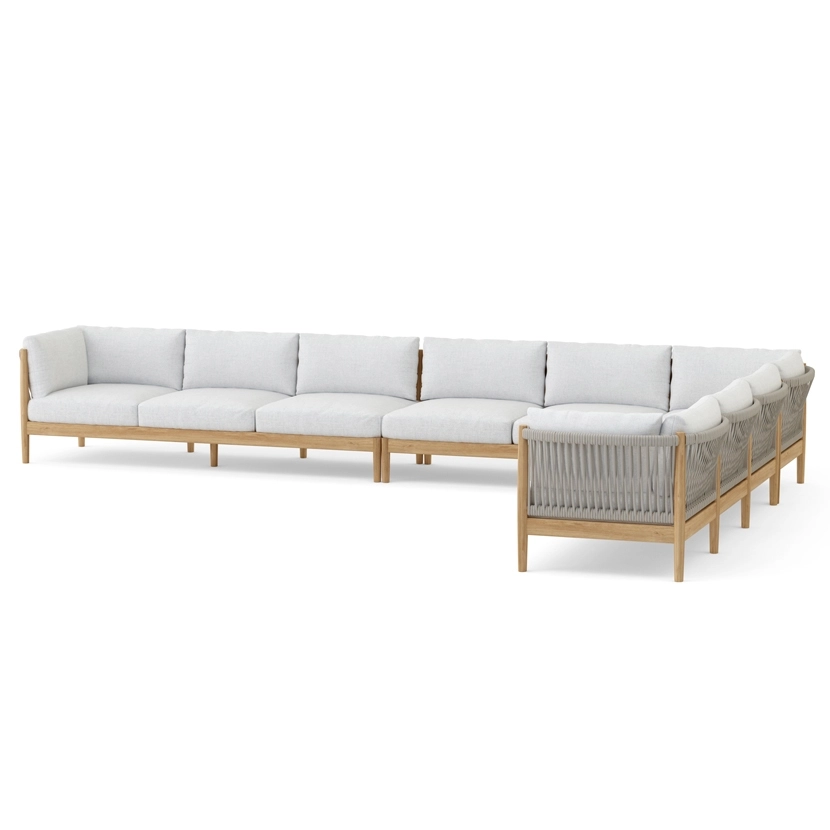 With remarkable comfort and elegant styling, the Georgica lounge collection invites you to sink in. Constructed from solid teak wood, subtle curves complement contrasting woven rope panels. Georgica is offered as a sectional sofa allowing a variety of planning configurations.