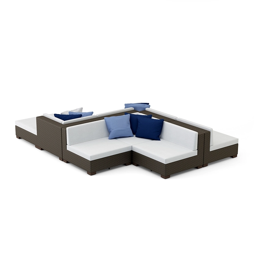 Modular and minimal with a contemporary feel, the Atlantic collection’s interchangeable sections provide a comfortable, adaptable setting. Constructed with durable flat woven resin, clean lines topped with cozy cushions make this set ideal for a range of applications and environments.