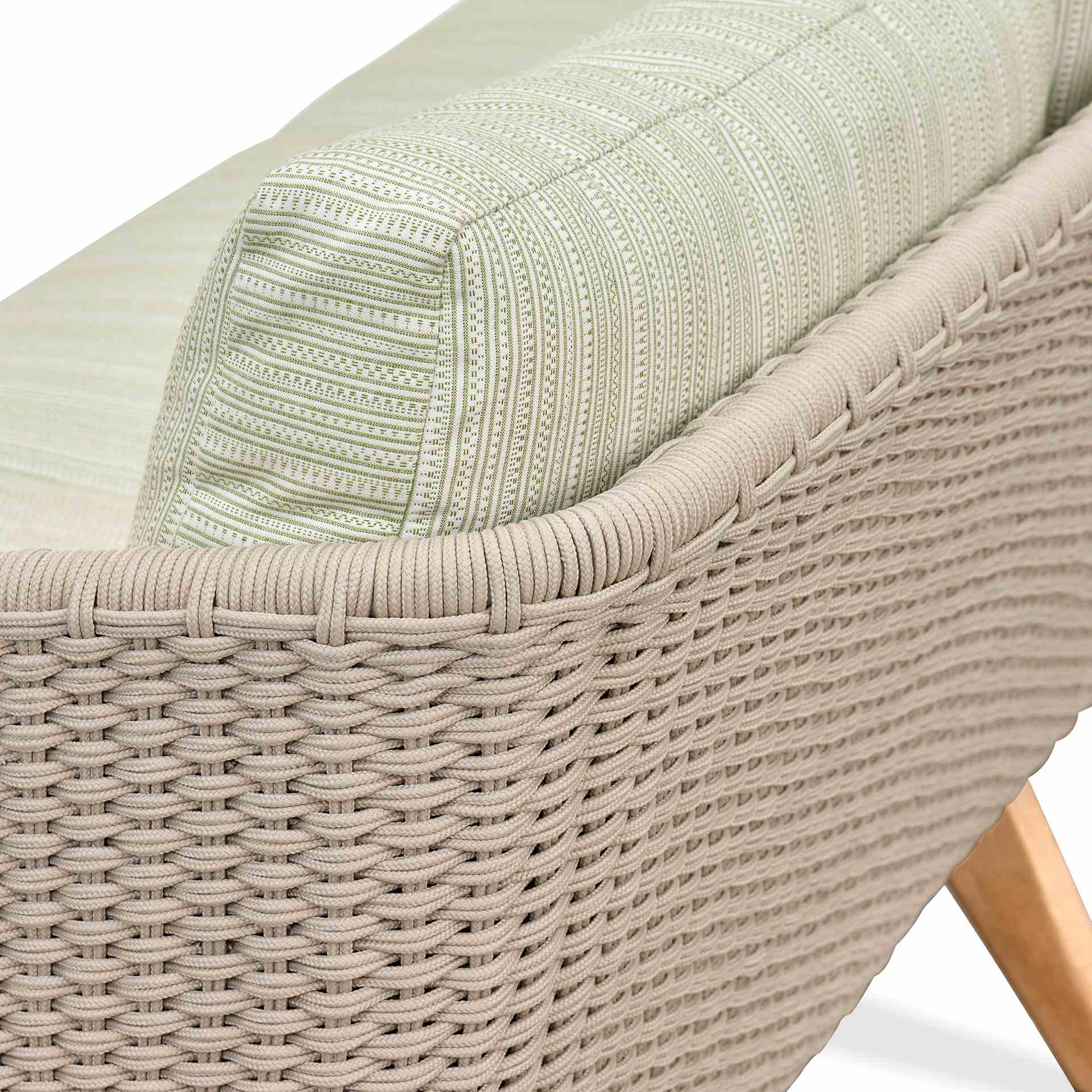 Sophisticated and inviting, the Gondola collection by design master Roger Thomas features a gentle, curved shape that embraces and comforts. Crafted with teak frames and handwoven Rhino round rope seats, each piece exudes elegance and makes a timeless addition to any space.