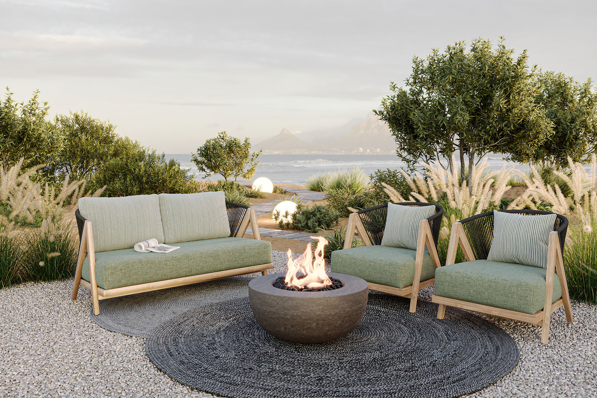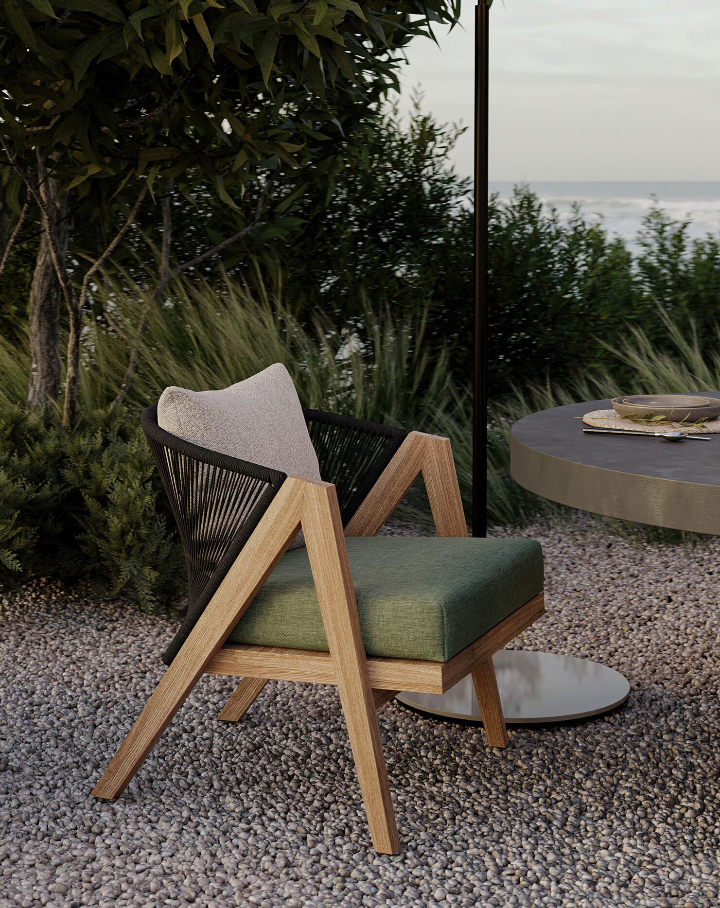 Crafted out of high quality solid teak wood and all-weather rope, Arbor is right at home in outdoor spaces, promising long term durability. This, in combination with the collection’s unique styling and modern flair, ensures that your space will look polished for many years to come.