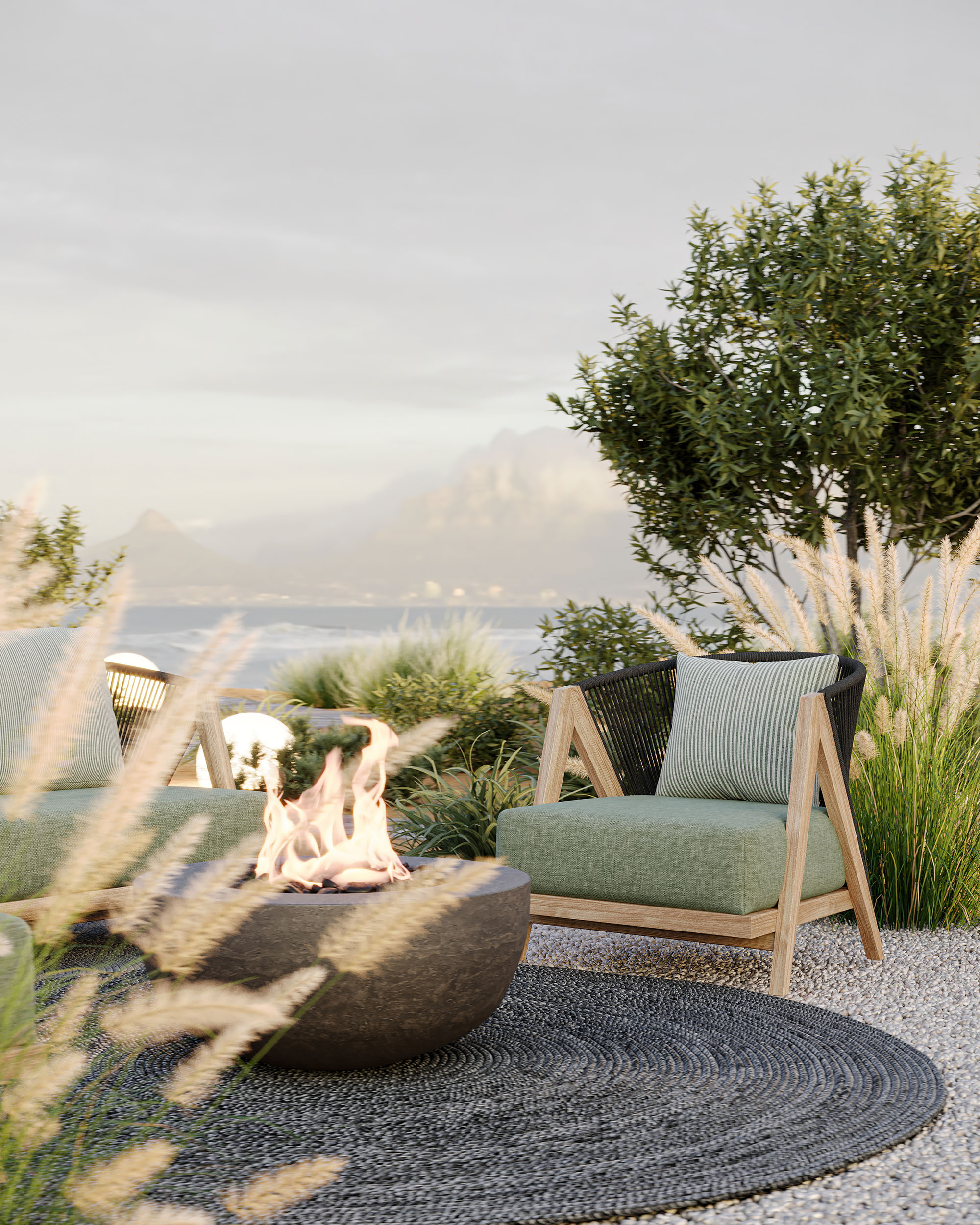 In addition to promoting comfort by conforming to the contours of the body, the rope backrests also create a unique and striking accent to set your space apart. The repeated lines of the woven pattern create a sense of rhythm and movement that effortlessly draws attention, while the combination of materials and textures achieve an inviting tactile richness.