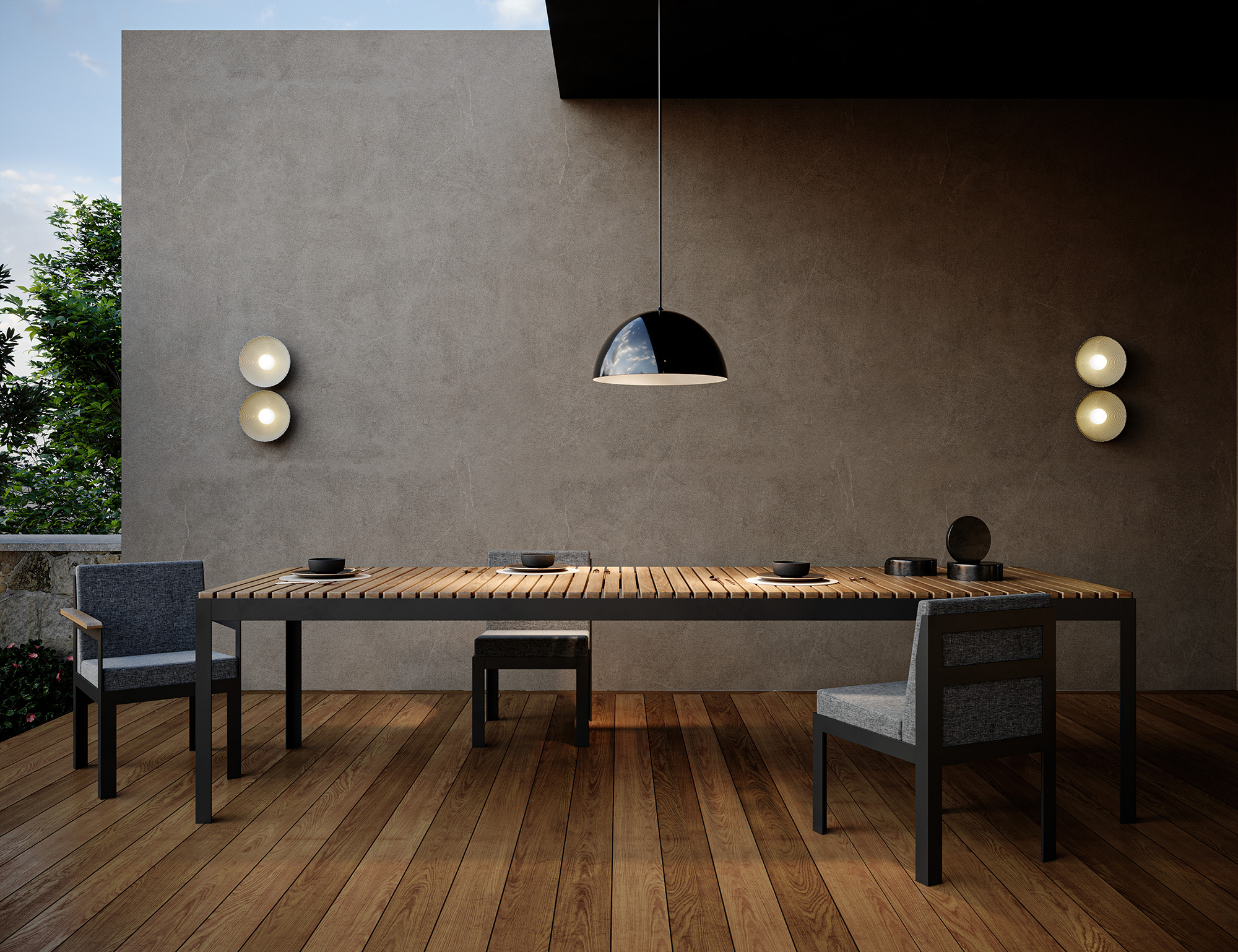 This collection features clean lines, generous and solid proportions and thoughtful materiality. It transitions easily between indoor and outdoor environments.