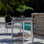 - Frame designed in a durable powder coated aluminum and wrapped in an all-weather outdoor rattan