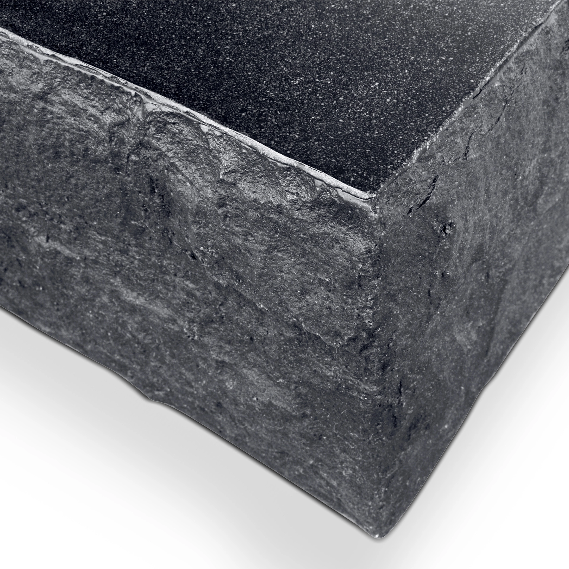 This collection is comprised of GFRC (also known as fiberstone or lightweight concrete) which is a proprietary mix of fiberglass, resin, and crushed stone. The benefit of this material is it mimics the appearance of traditional concrete but it is significantly lighter, more durable, and nore resistant against cracking, warping, and crumbling.