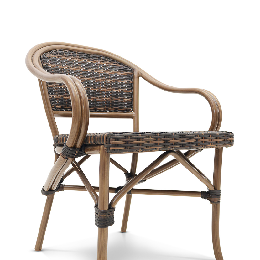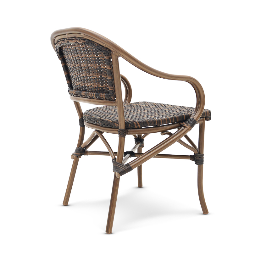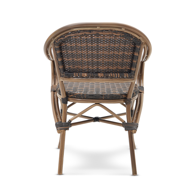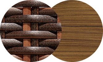 - Product displayed in our suggested finish (MF4 Faux Walnut with RP9 Semi-Flat Cocoa Brown). Made to order options are available in our wide variety of powder coat and all-weather wicker colors