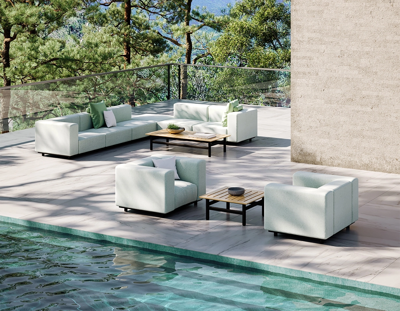 - Cushion set is available in our own premium Giati Elements fabric, in all Sunbrella fabrics or COM. Zippers are corrosion resistant.