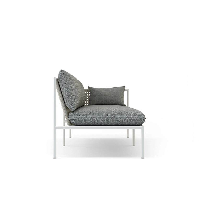 Like the mast of a sailboat, the collection’s reinforced powder coated aluminum frames and double wall rope-pane structures marry the lasting strength of metal with the trusted hand of knotted rope.
