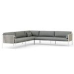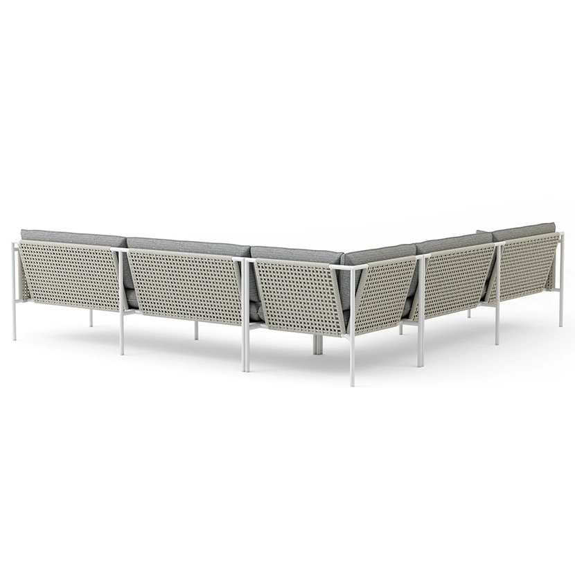 Like the mast of a sailboat, the collection’s reinforced powder coated aluminum frames and double wall rope-pane structures marry the lasting strength of metal with the trusted hand of knotted rope.