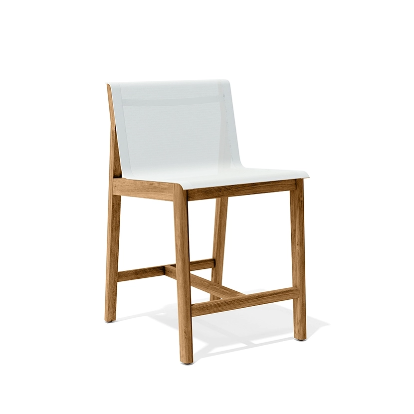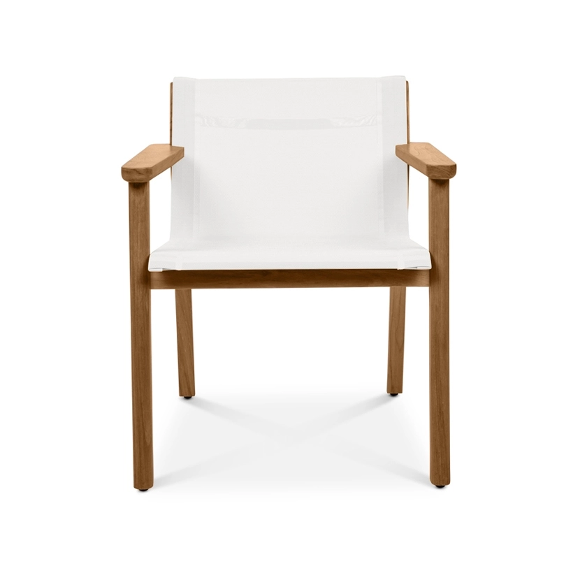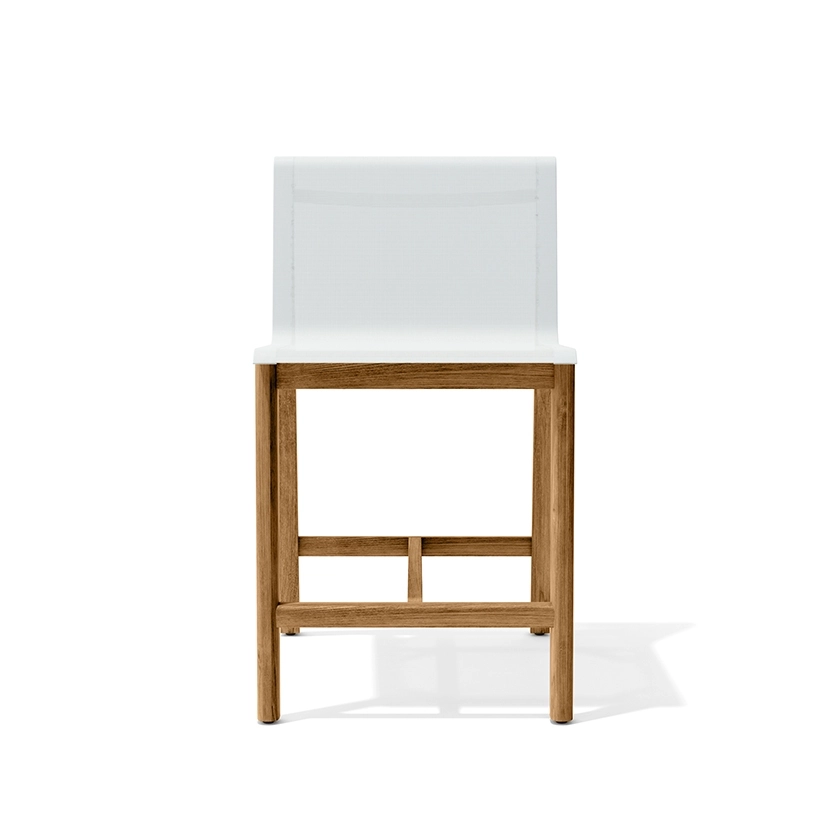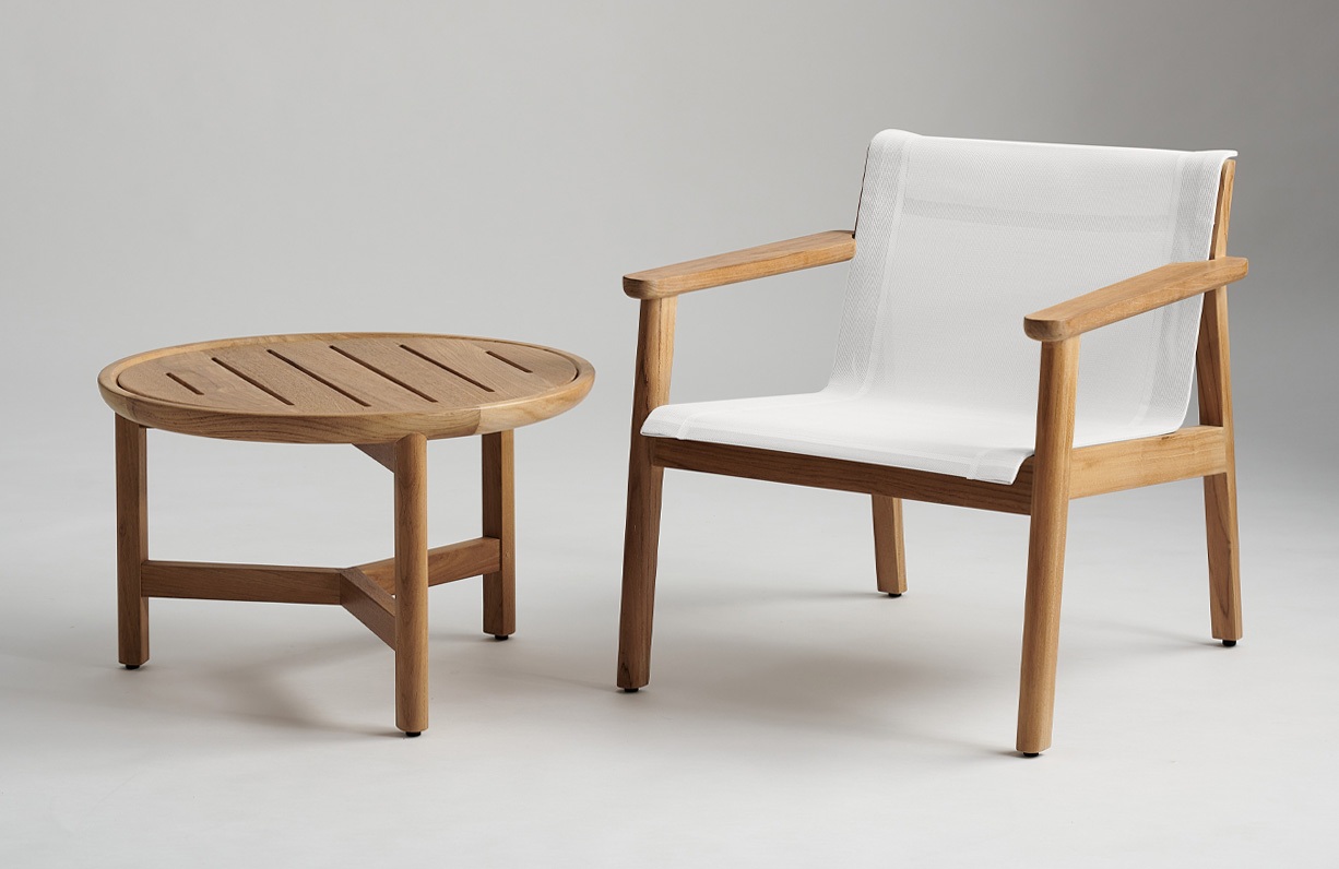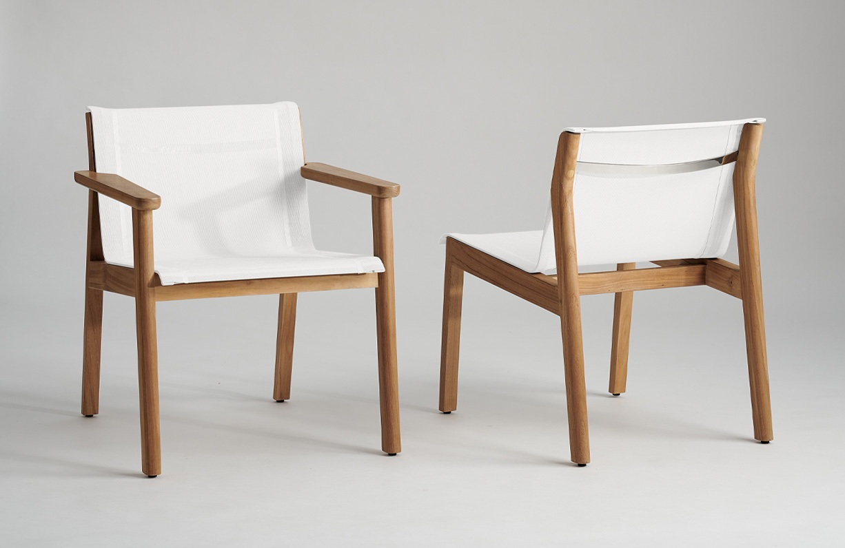 The Tessera Lounge Chair features a seamless seat and back sling. The weather resistant Batyline mesh is comfortable without the need for cushions or bolsters. Teak grain details and polished hardware accentuate the use of this mixed material collection.