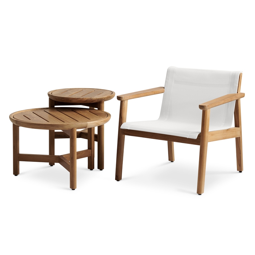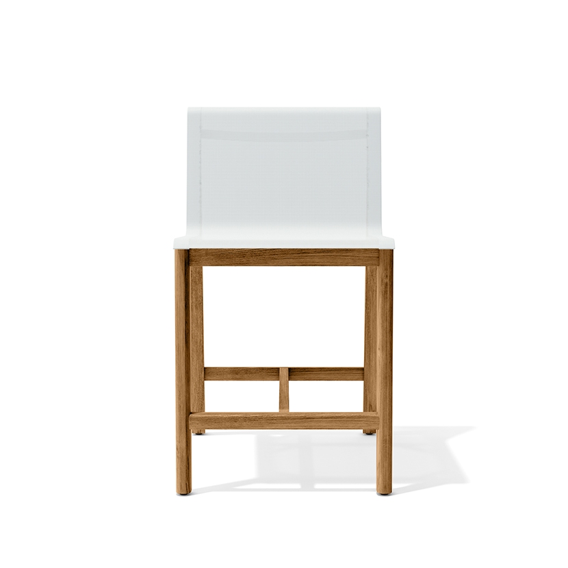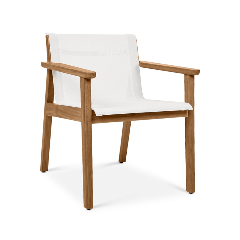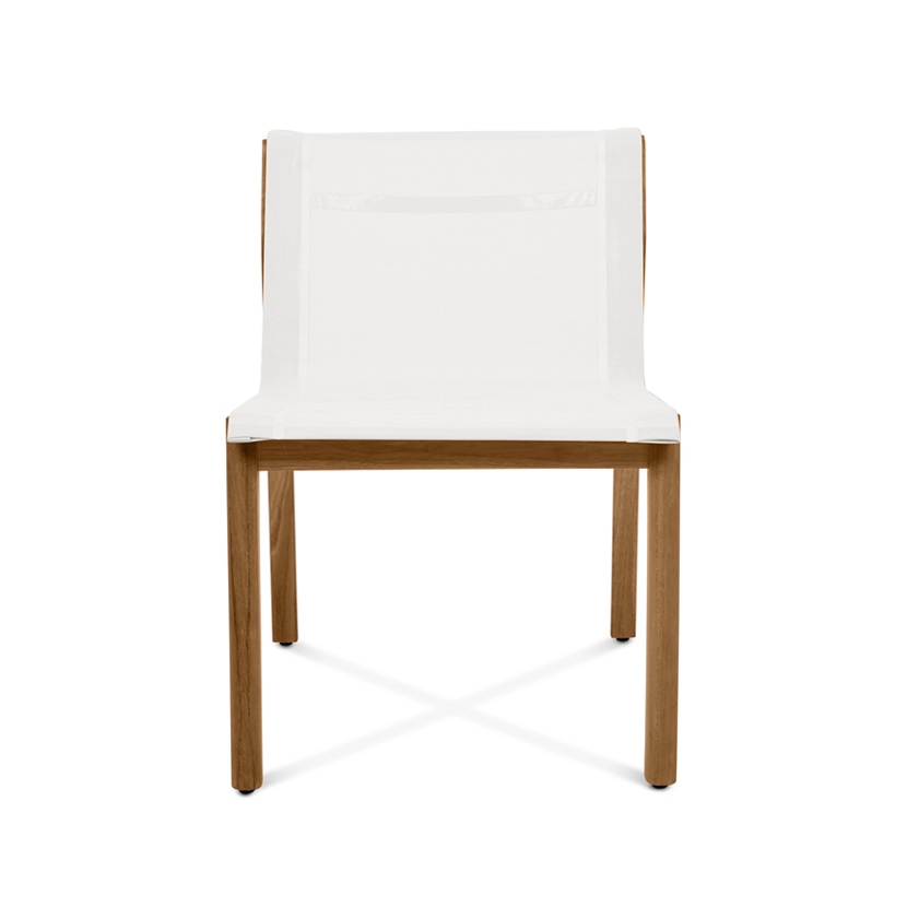 The Tessera Lounge Chair features a seamless seat and back sling. The weather resistant Batyline mesh is comfortable without the need for cushions or bolsters. Teak grain details and polished hardware accentuate the use of this mixed material collection.