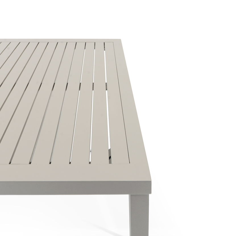 Introducing our sophisticated cafe-style slatted tabletop, expertly designed for both functionality and aesthetic appeal. Constructed from high-quality, weather-resistant materials, the slatted surface promotes airflow while providing a clean, modern look