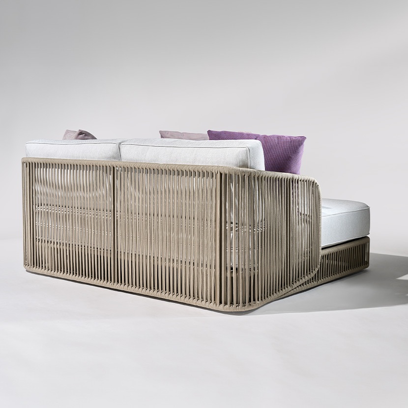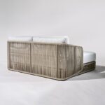 Wainscott collection features handwoven, all-weather rope in powerful vertical lines. Designed with natural spaces in mind, its rhythmic repetition mimics the surrounding landscape and seamlessly integrates into indoor and outdoor settings. The collection includes seating options for lounging and dining, with a versatile and sophisticated design