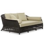 - Frame designed in a durable powder coated aluminum and wrapped in an all-weather outdoor rattan