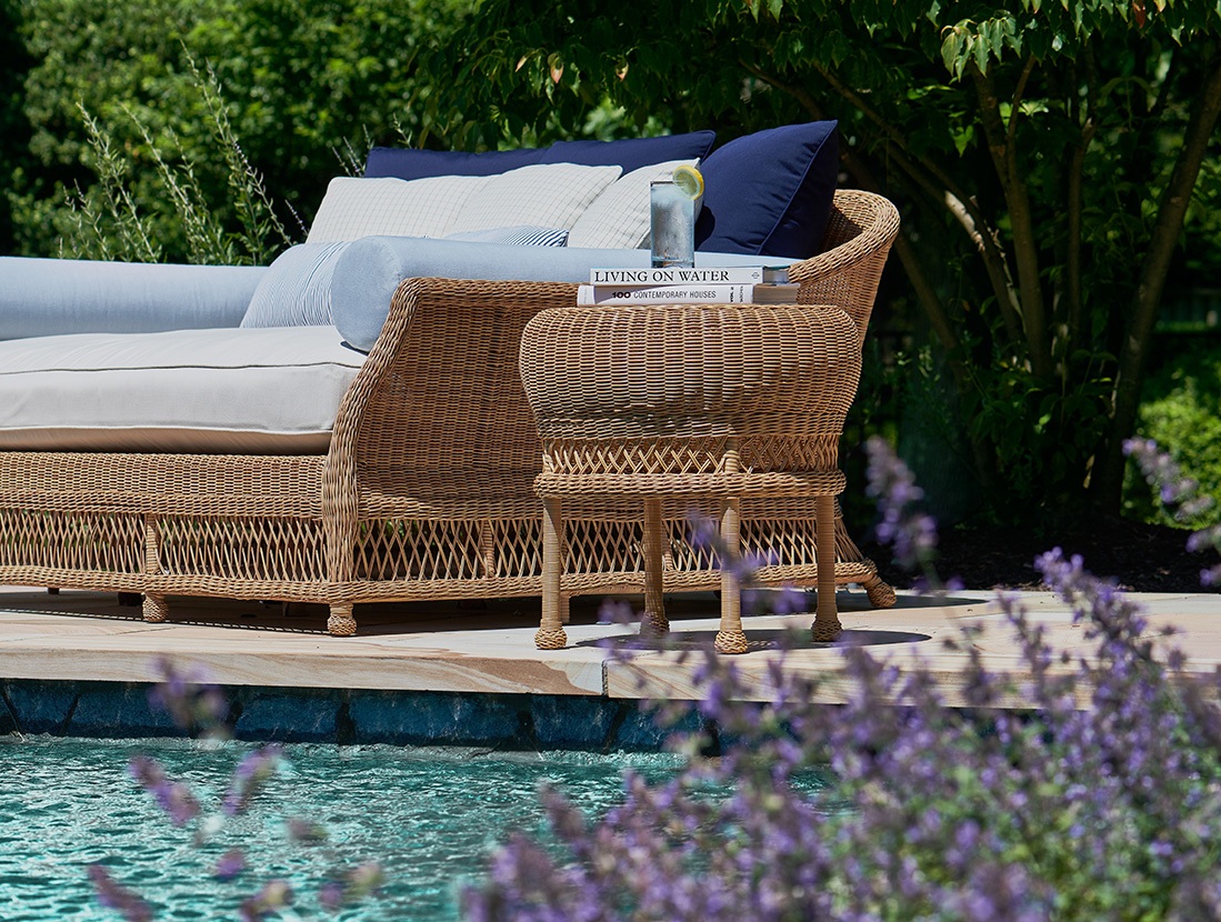 - Frame designed in a durable powder coated aluminum and wrapped in an all-weather outdoor rattan resin