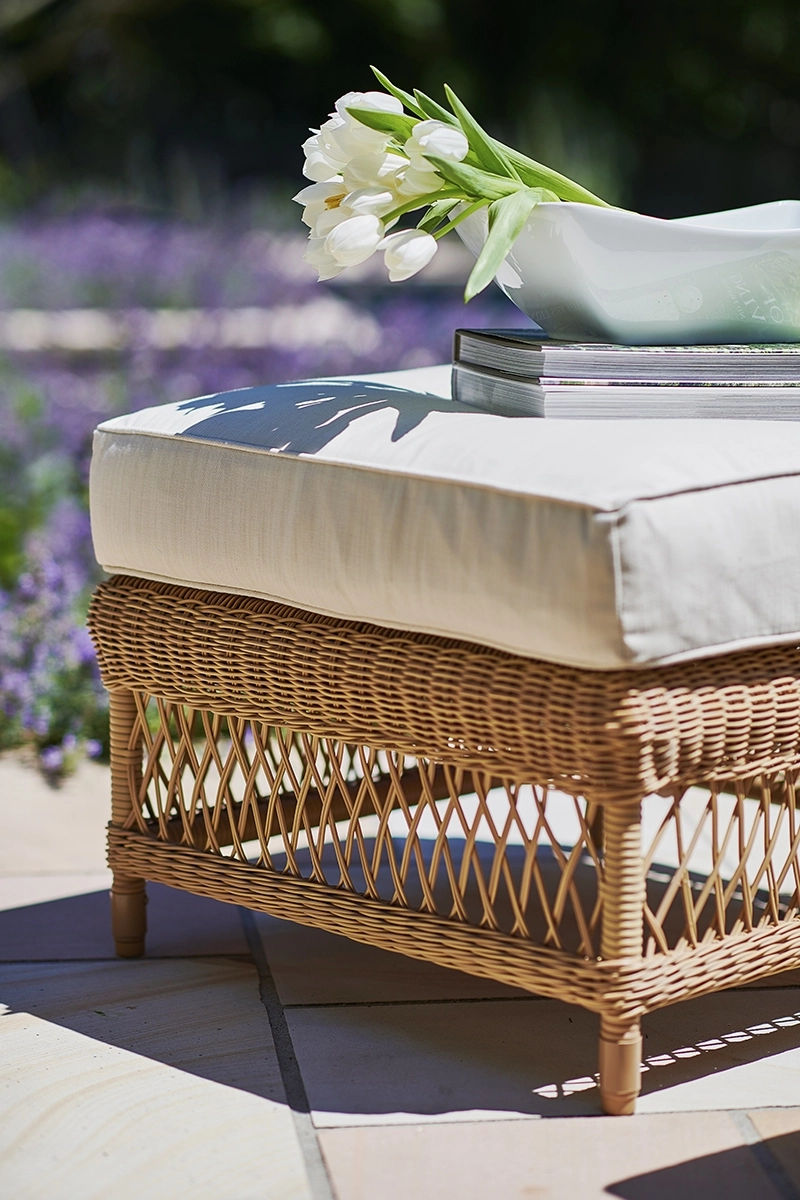 - Frame designed in a durable powder coated aluminum and wrapped in an all-weather outdoor rattan