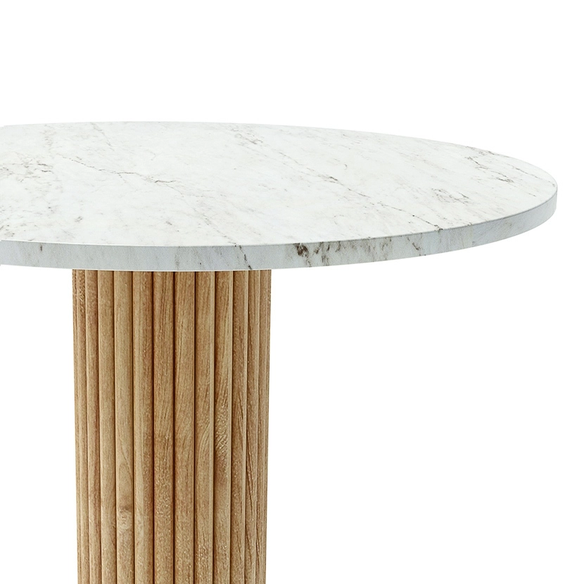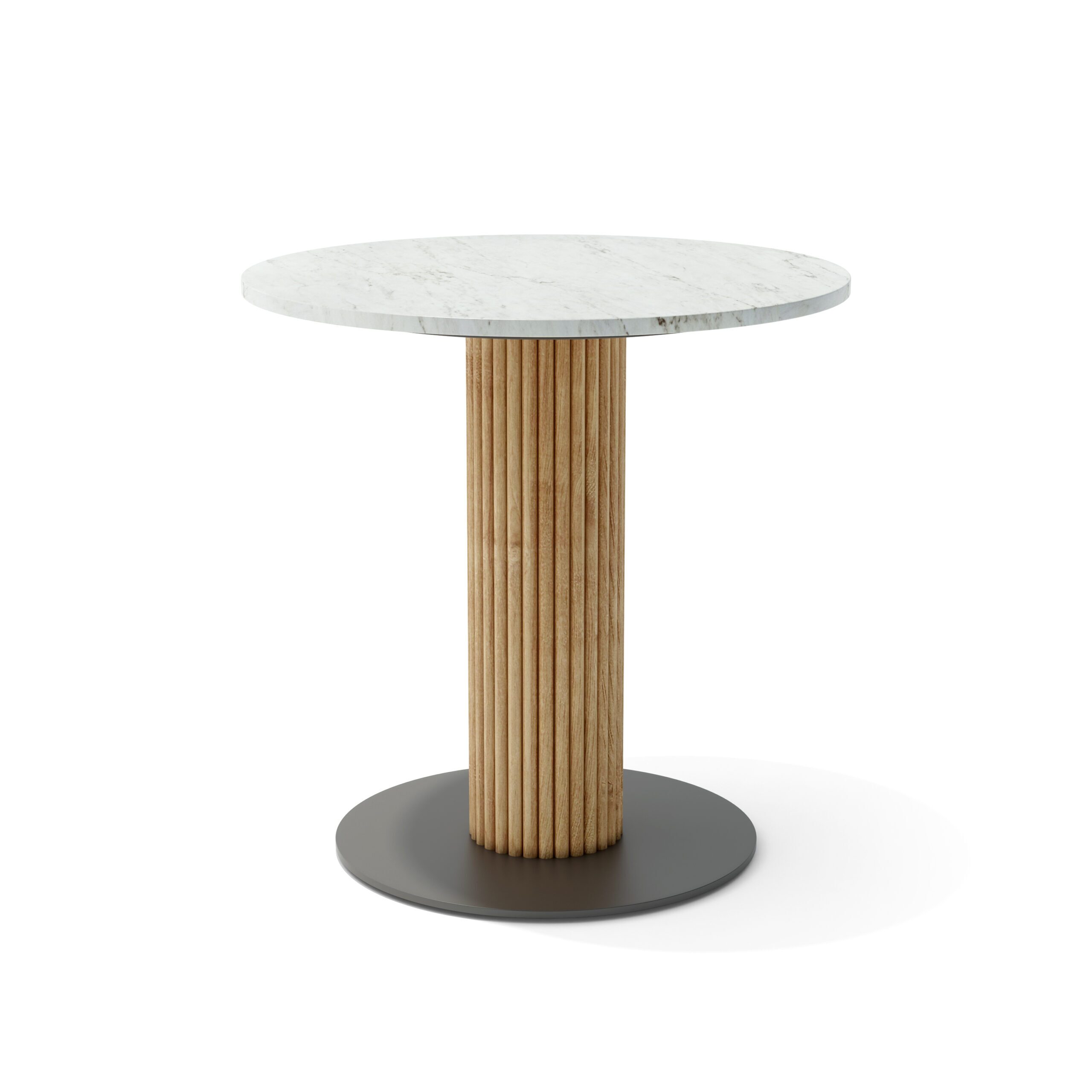 - Frame designed using powder coated aluminum and premium sourced teak from Indonesia with a sealed marble top.