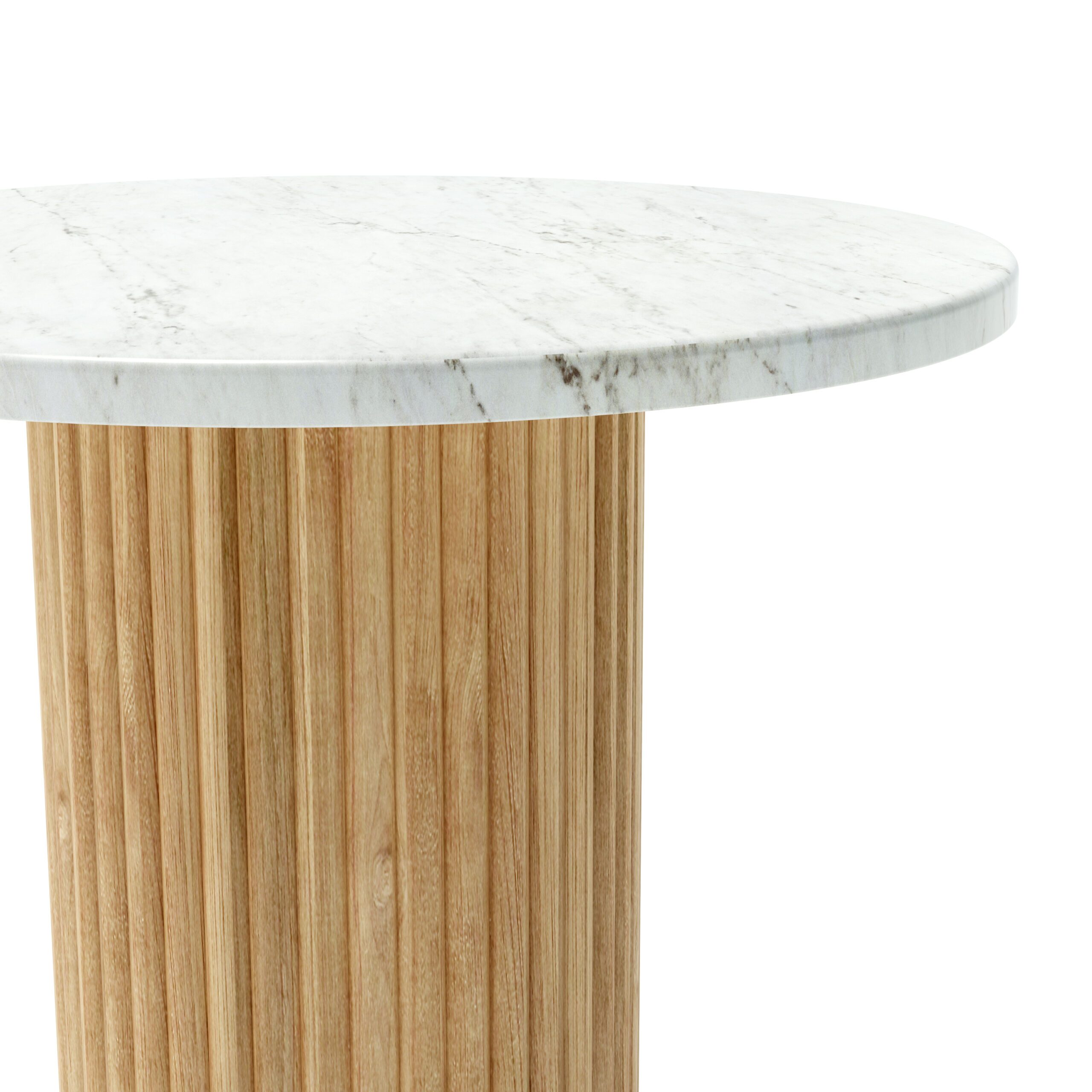 - Frame designed using powder coated aluminum and premium sourced teak from Indonesia with a sealed marble top.