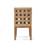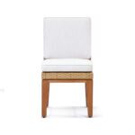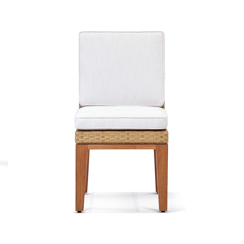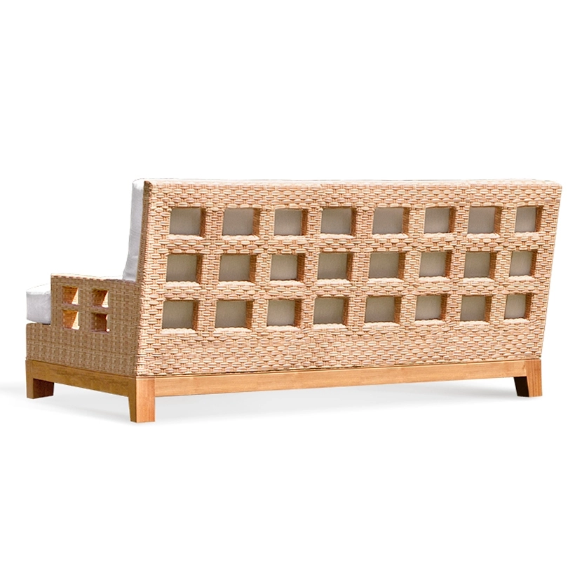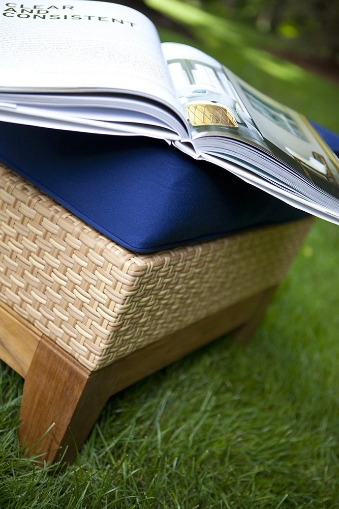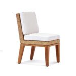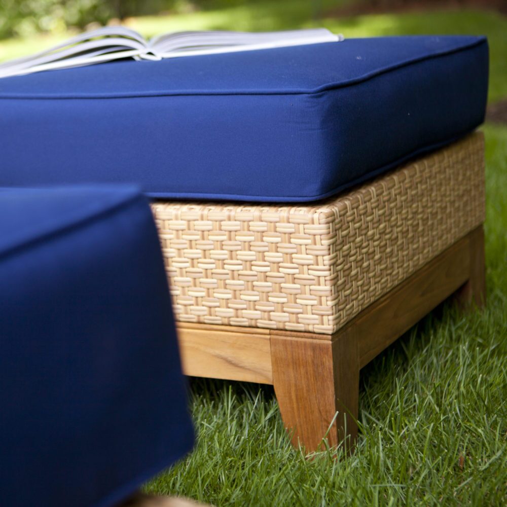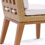 - Internal frame designed in a durable powder coated aluminum and wrapped in an all-weather semi-flat resin on natural teak feet.