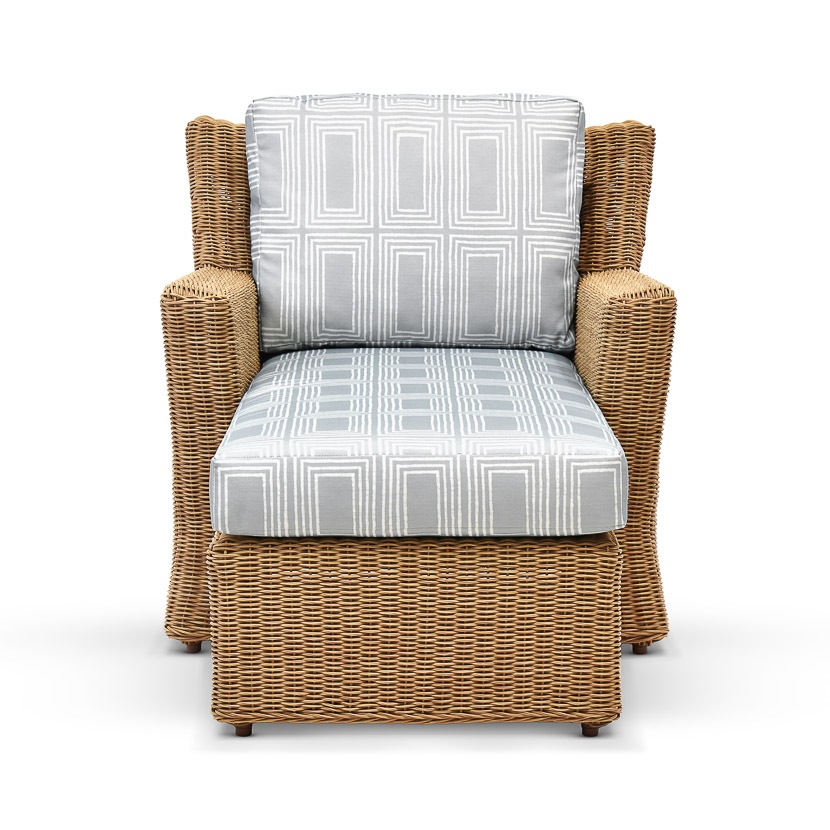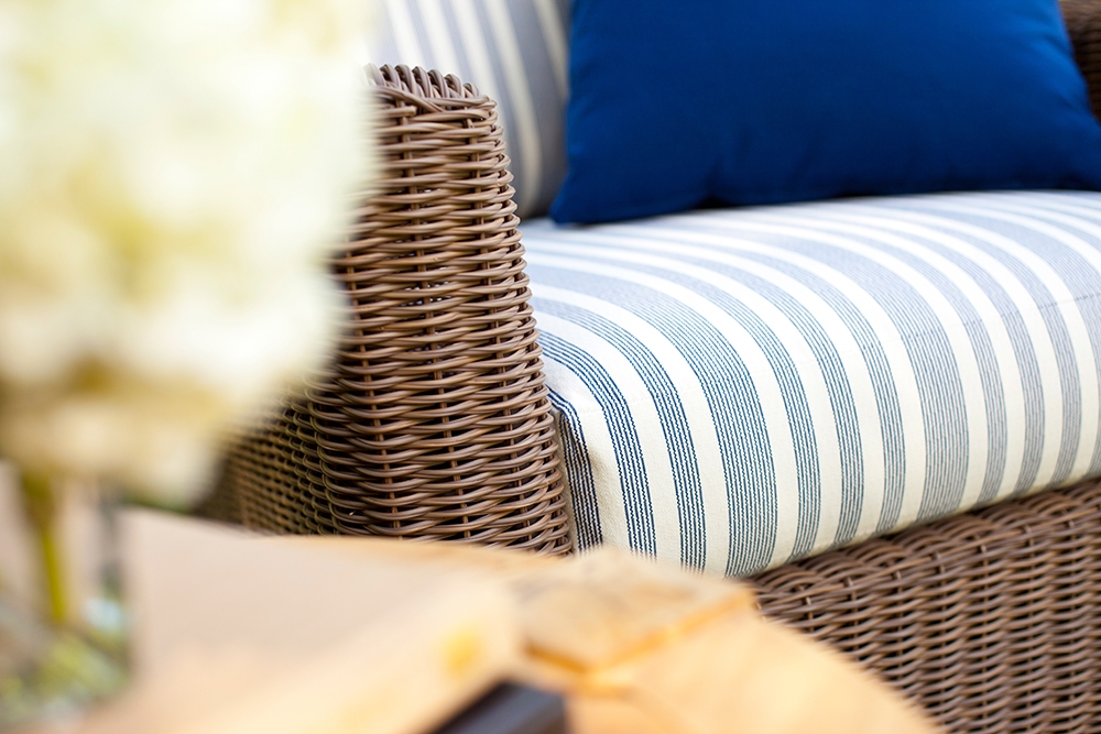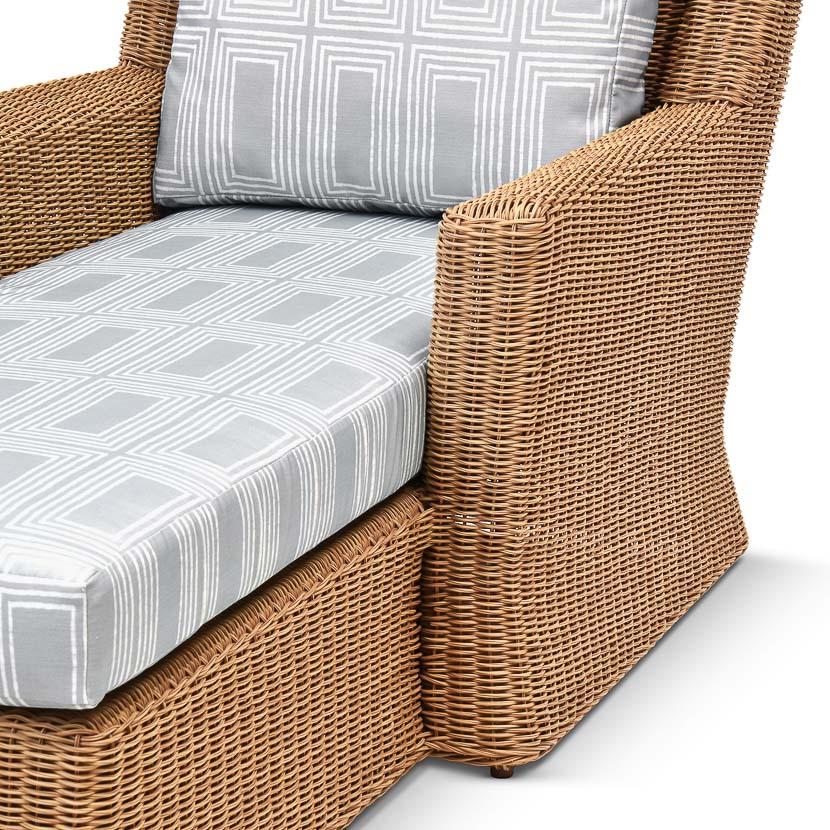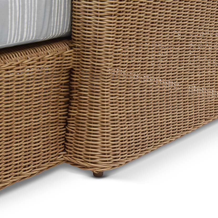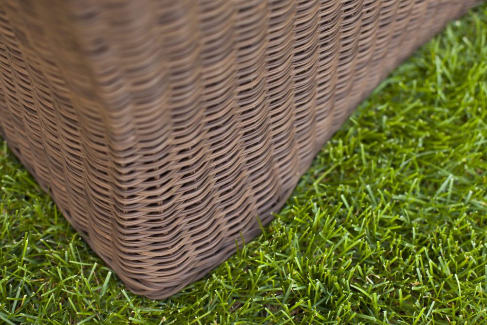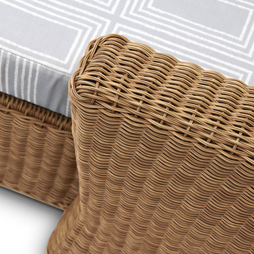 - Internal frame designed in a durable powder coated aluminum and wrapped in an all-weather outdoor resin wicker.