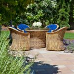 - Internal frame designed in a durable powder coated aluminum and wrapped in an all-weather outdoor wicker.