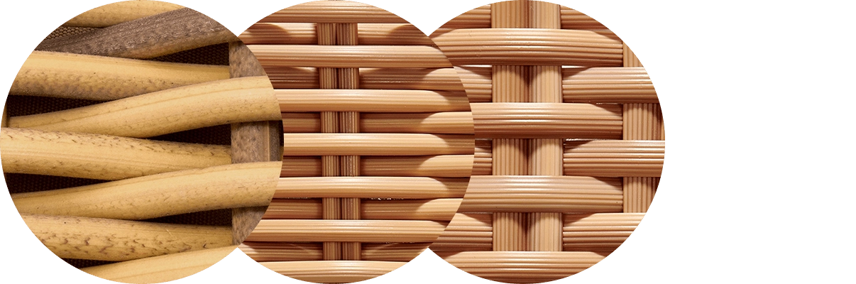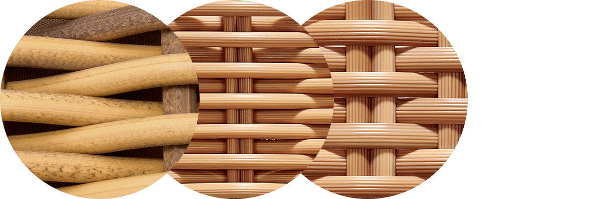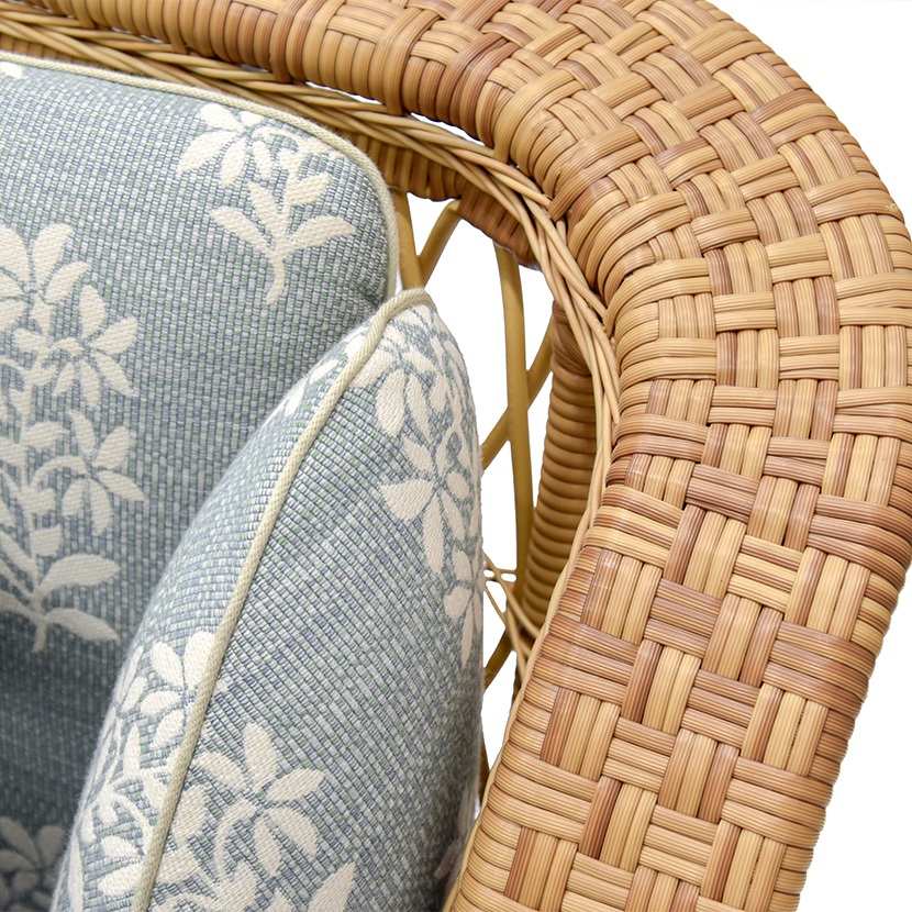 - Internal frame designed in a durable powder coated aluminum and wrapped in an all-weather outdoor rattan.