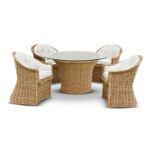 - Shown with Glass Top 60″Dia, with Classic Bowed Front Dining Chairs.