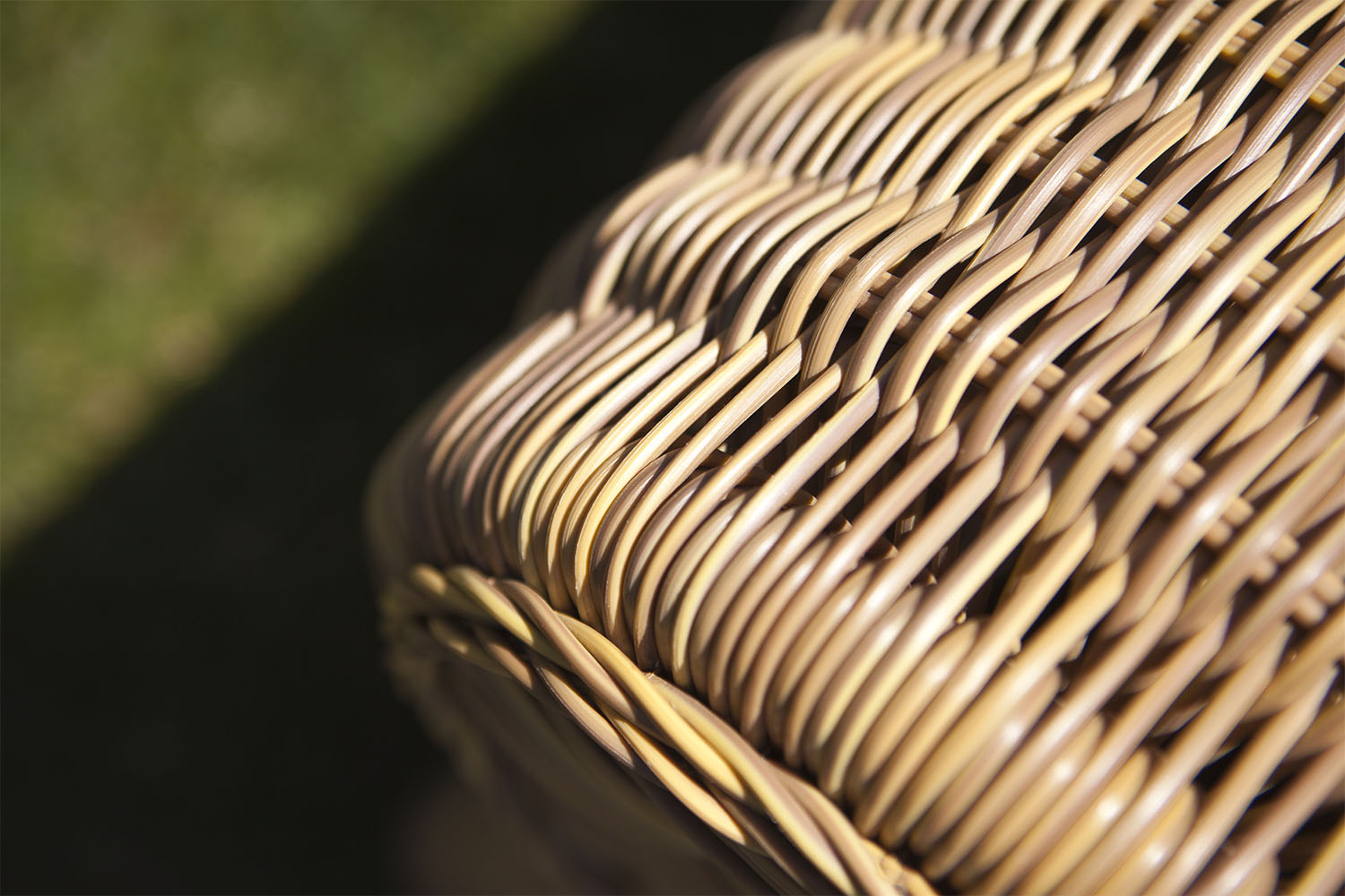 - Internal frame designed in a durable powder coated aluminum and wrapped in an all-weather outdoor rattan.