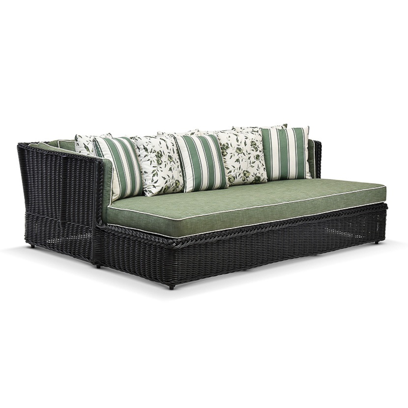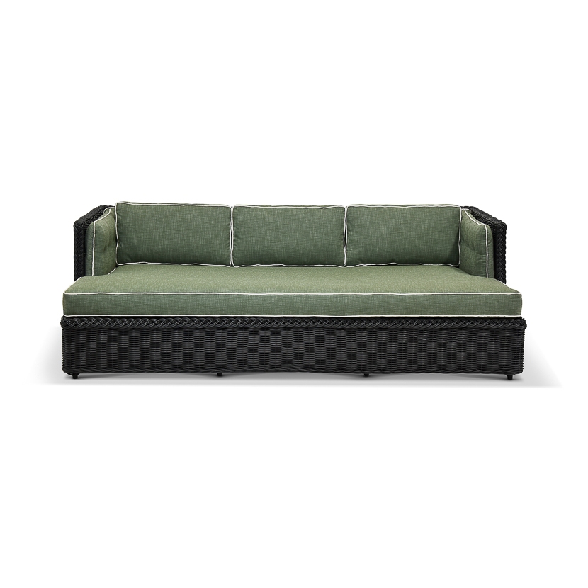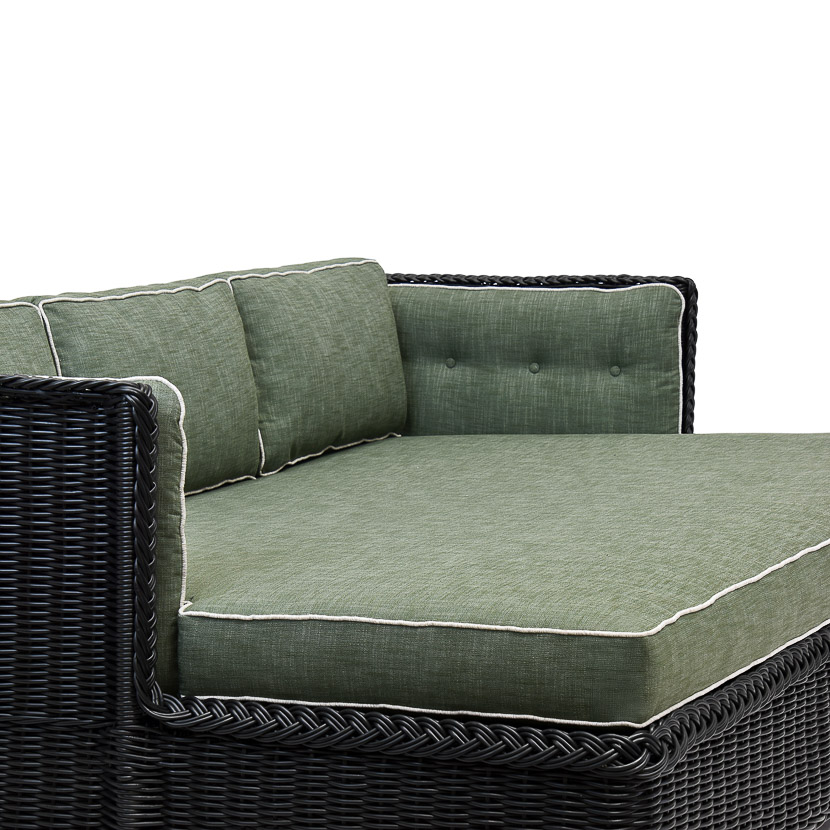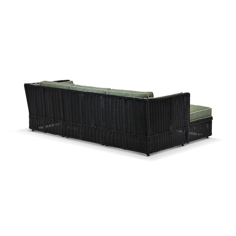 - Internal frame designed in a durable powder coated aluminum and wrapped in an all-weather outdoor wicker.