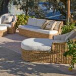 - Internal frame designed in a durable powder coated aluminum and wrapped in an all-weather outdoor wicker.