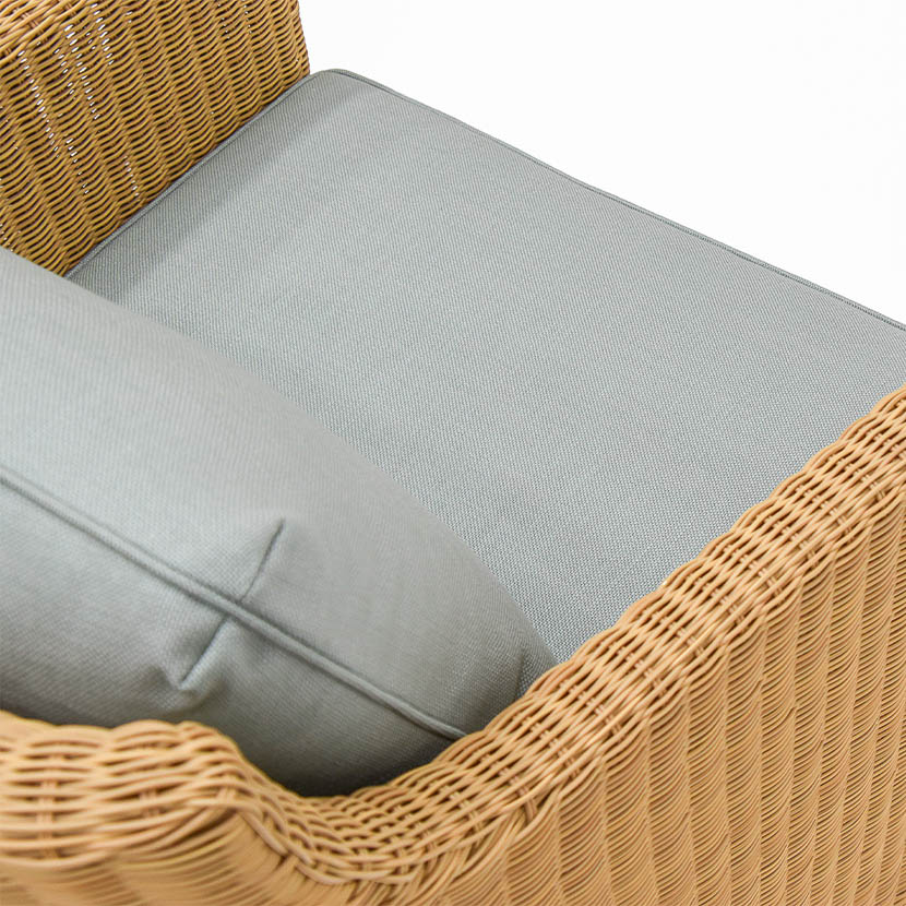 - Internal frame designed in a durable powder coated aluminum and wrapped in an all-weather outdoor wicker.