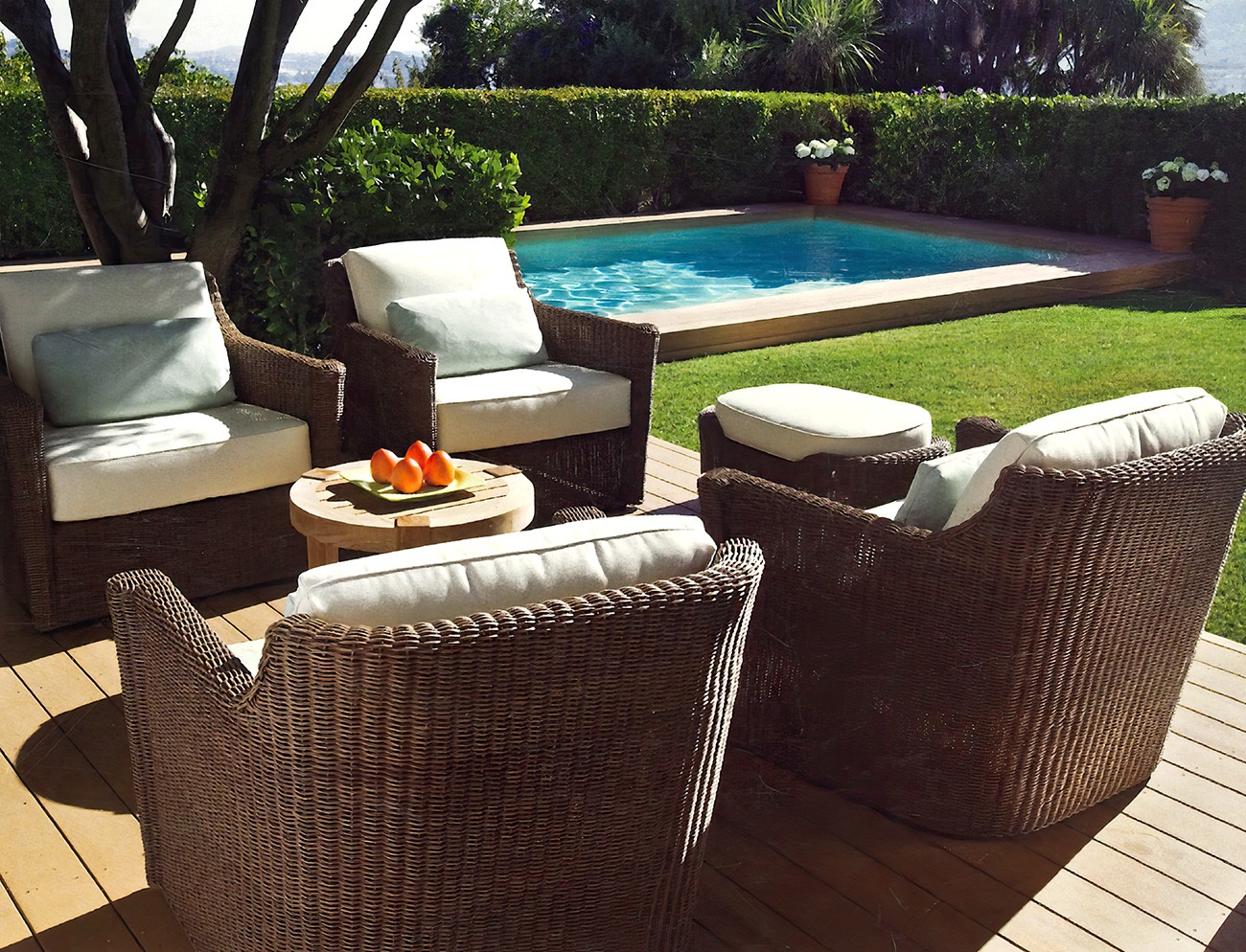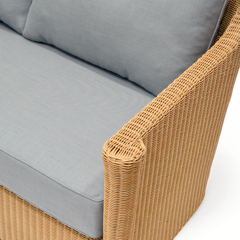 - Internal frame designed in a durable powder coated aluminum and wrapped in an all-weather outdoor wicker.