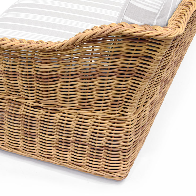 - Internal frame designed in a durable powder coated aluminum and wrapped in an all-weather outdoor resin wicker.